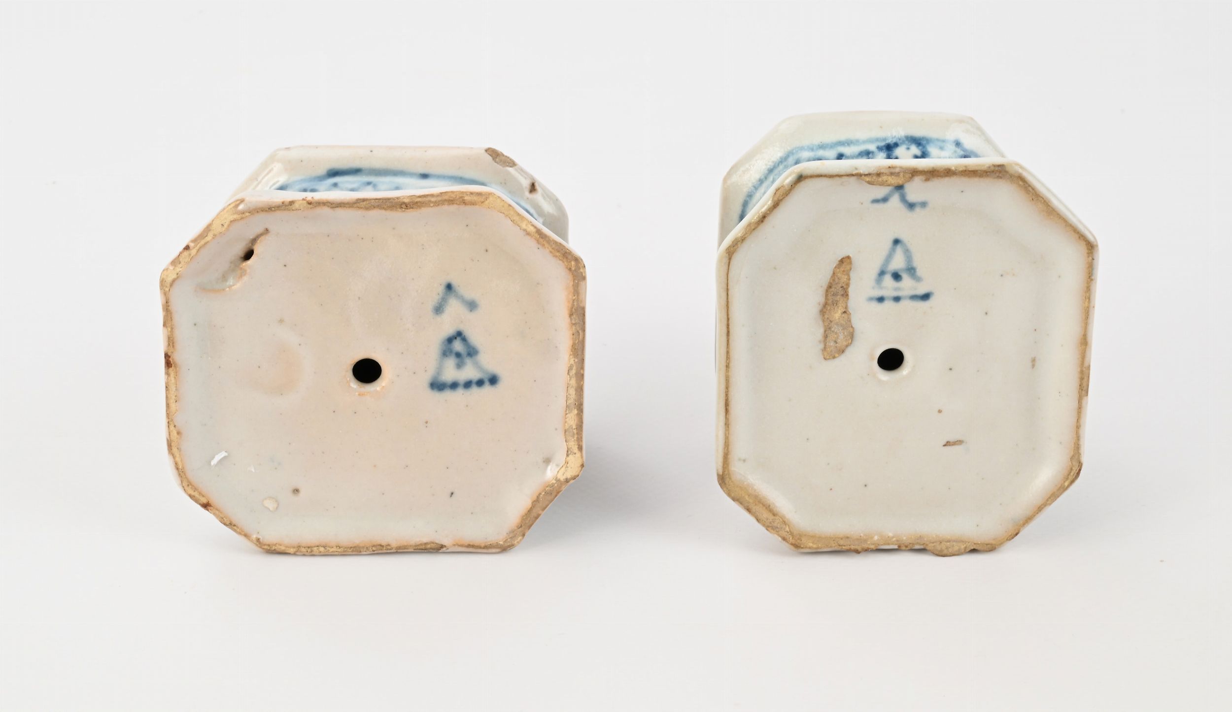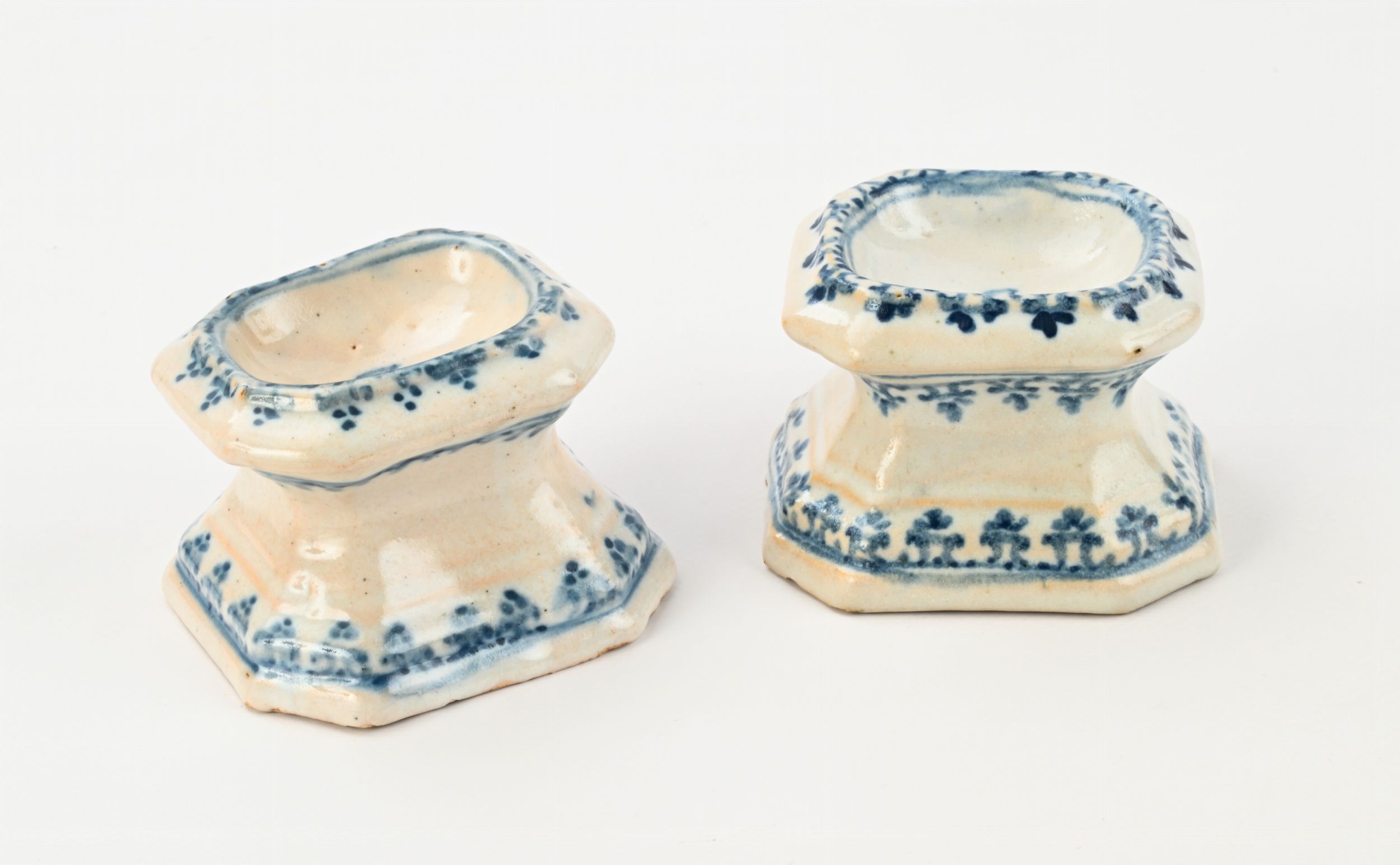 Coppia di saliere in maiolica bianca e blu, Savona, XVIII secolo