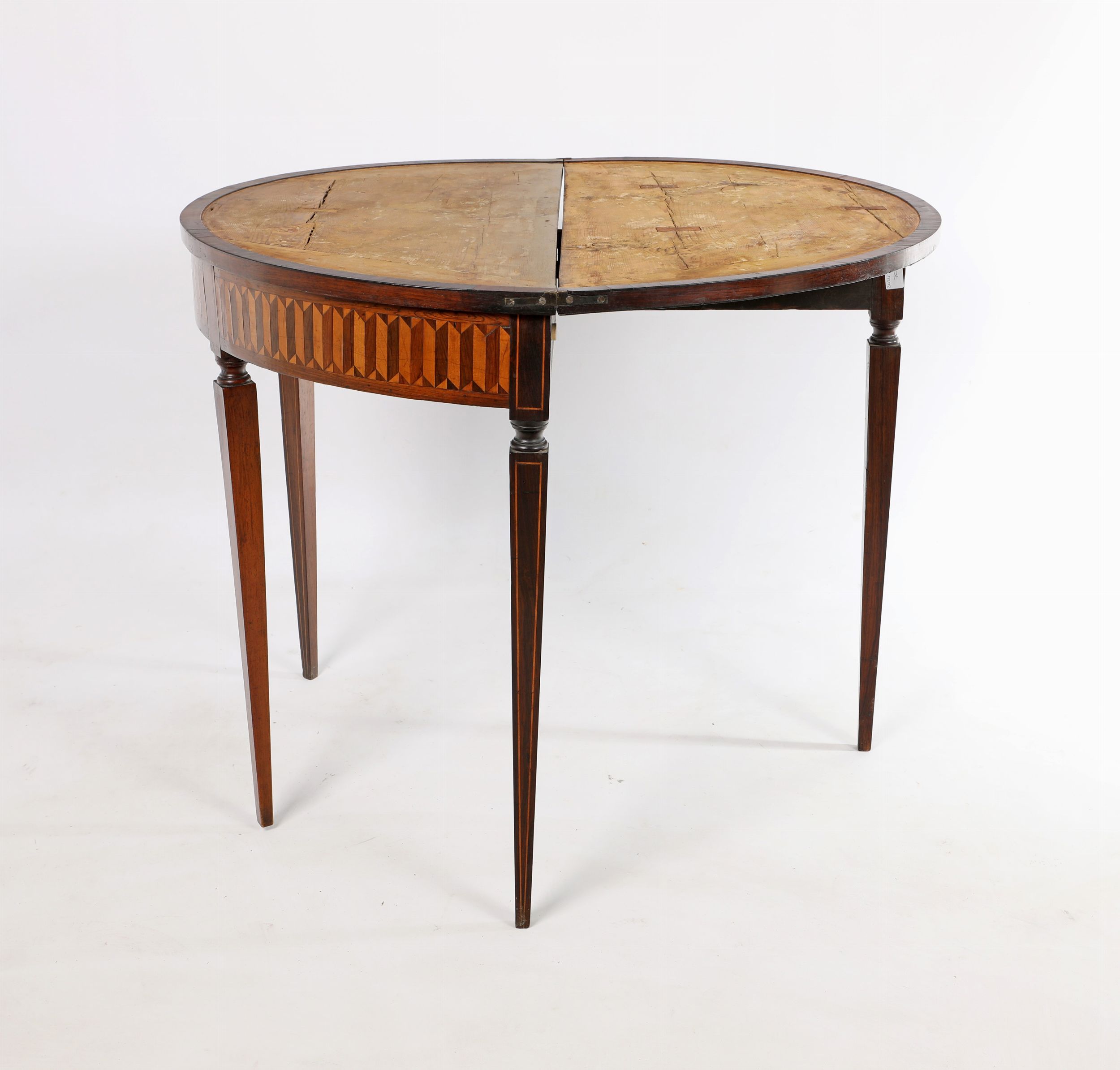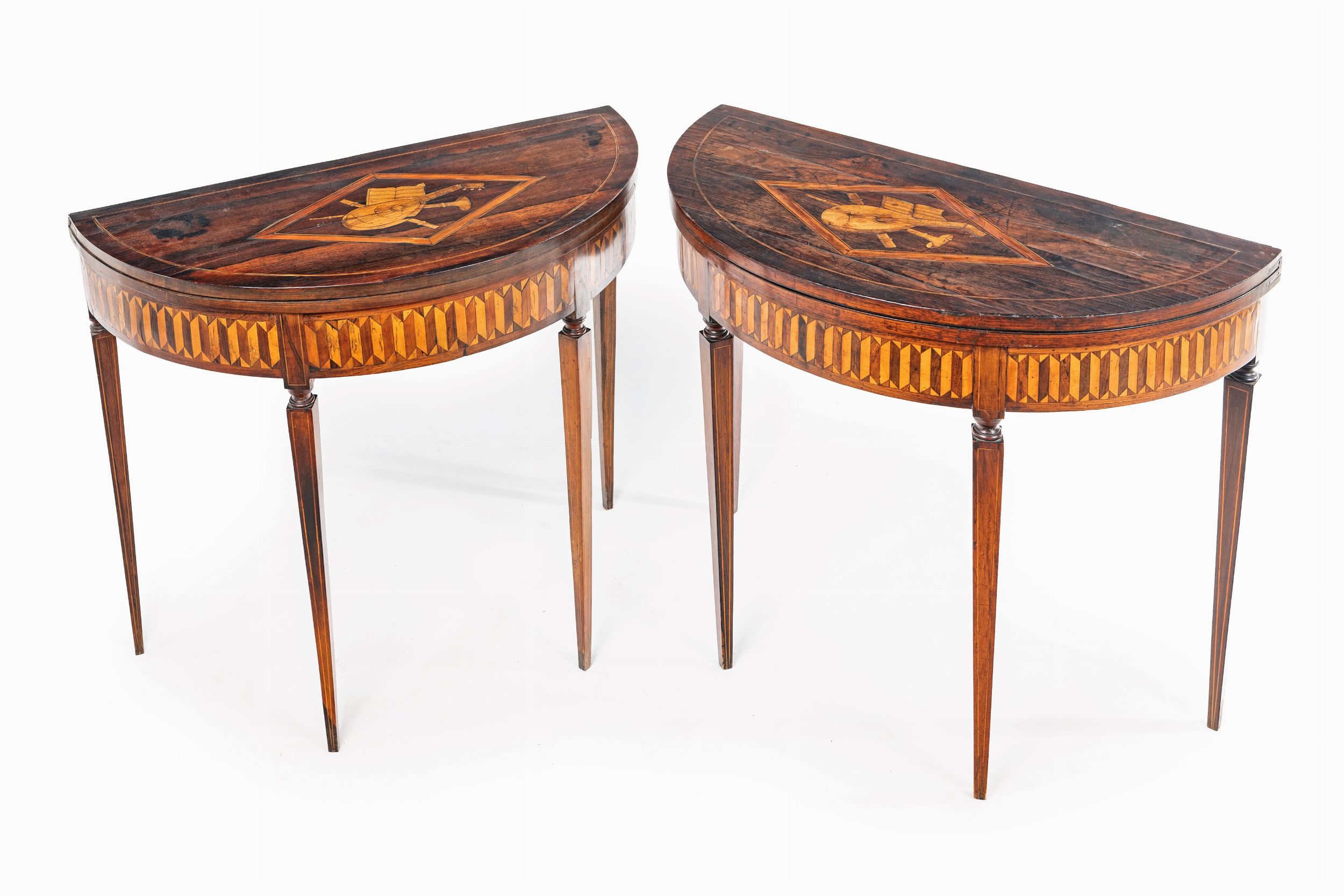 Coppia di tavolini da gioco a demi-lune con piano a libretto, Italia settentrionale, [..]