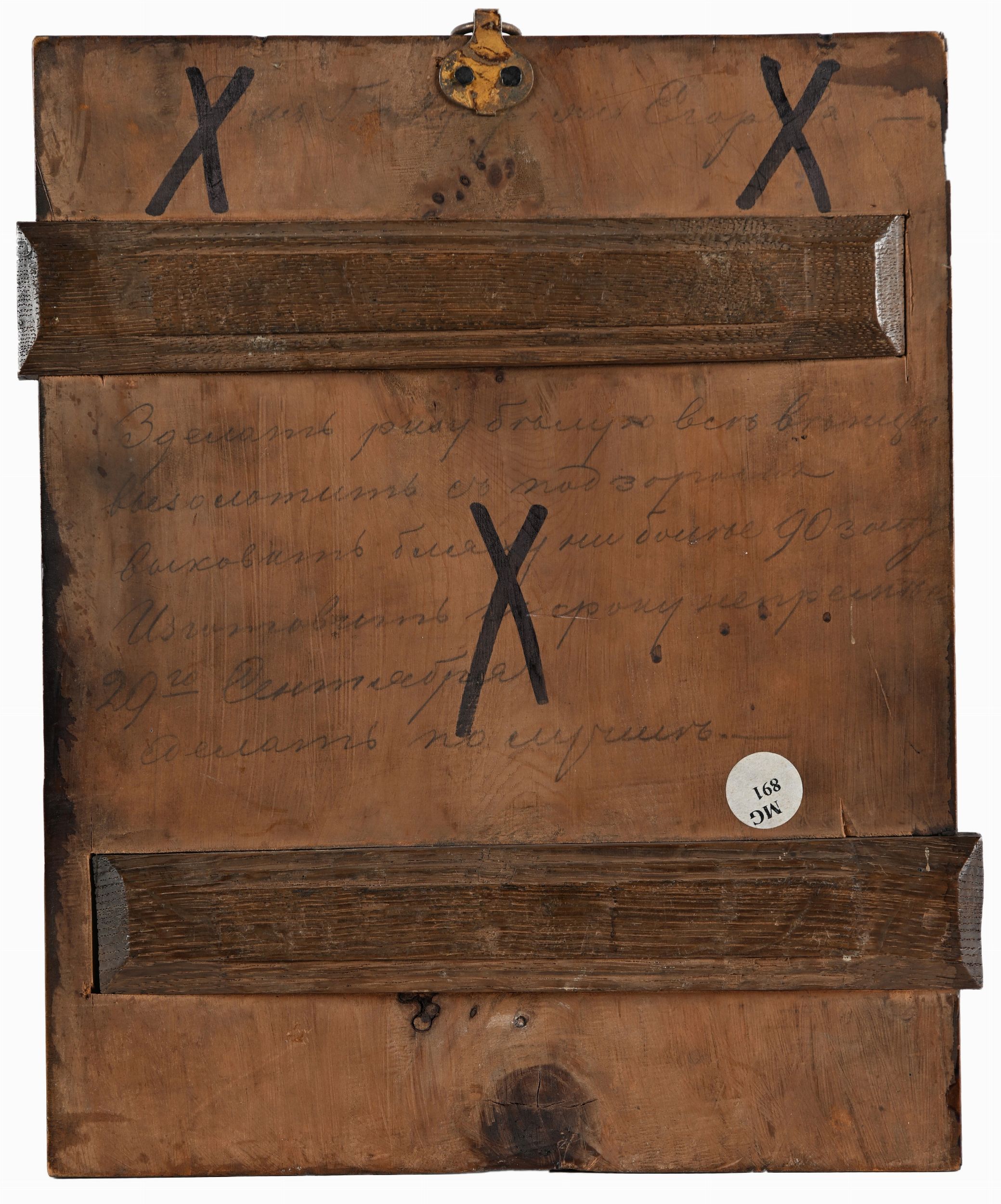 tempera su tavola fondo oro, cm 26,5x21,5 Nella rappresentazione archetipica la figura centrale del Cristo benedicente è affiancata dalla Madonna e San Giovanni Battista quali intercessori per la salvezza dell'umanità. Al verso iscrizione manoscritta