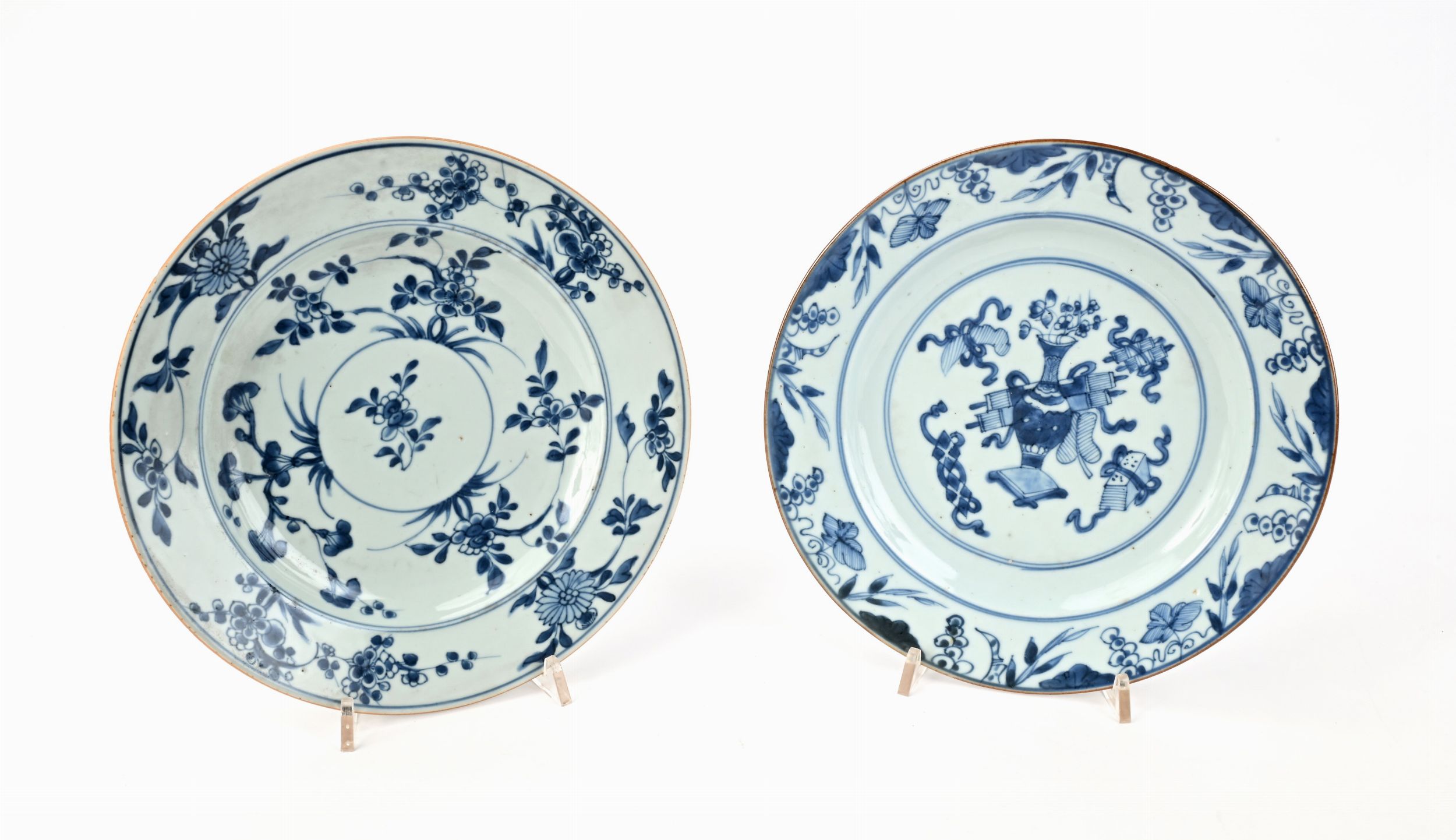Due piatti diversi in porcellana bianca e blu, Cina, XVIII secolo