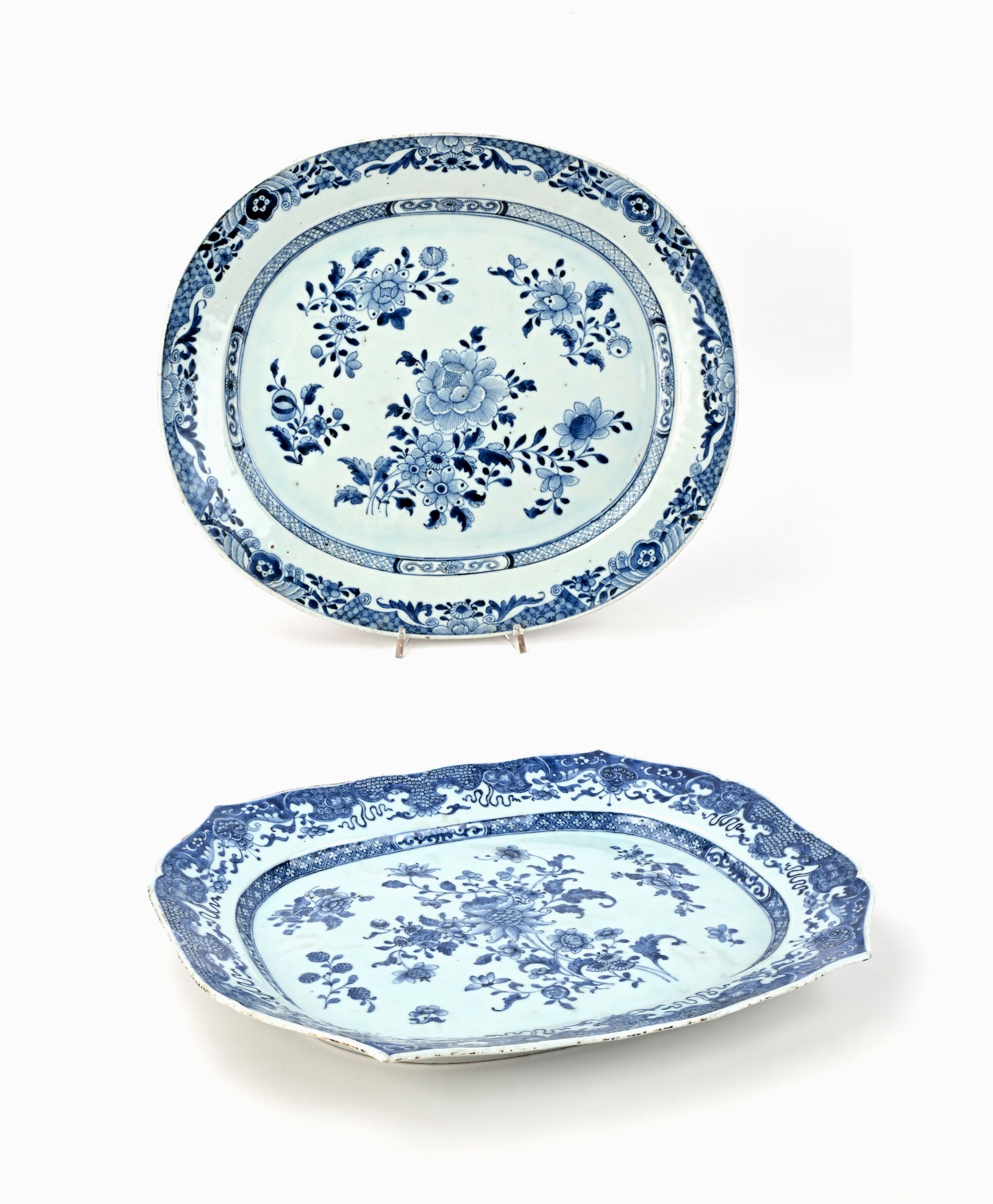 Due vassoi diversi in porcellana bianca e blu, Compagnia delle Indie, XVIII seco [..]