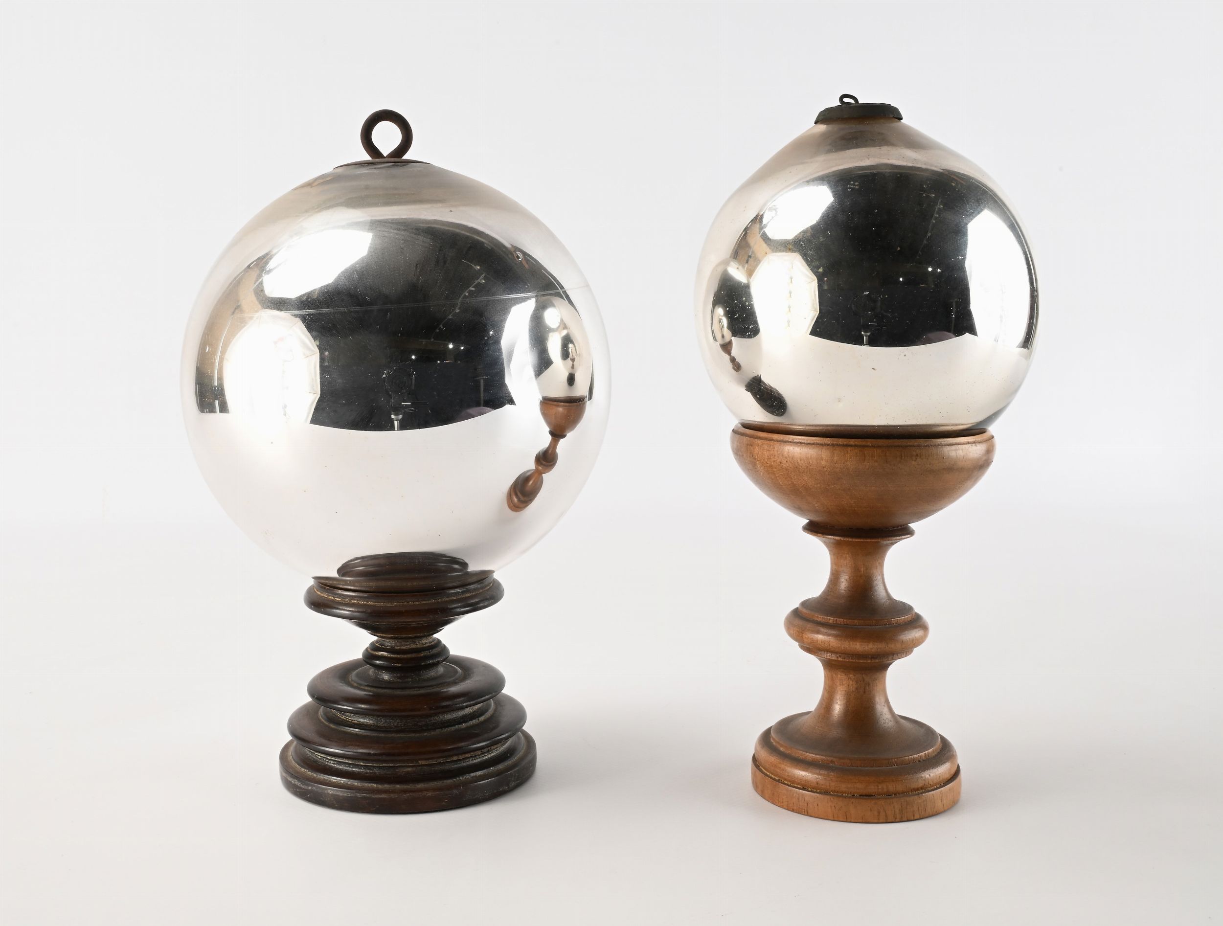 Due wish balls in vetro soffiato argentato, Inghilterra, fine XIX/inizi XX secol [..]