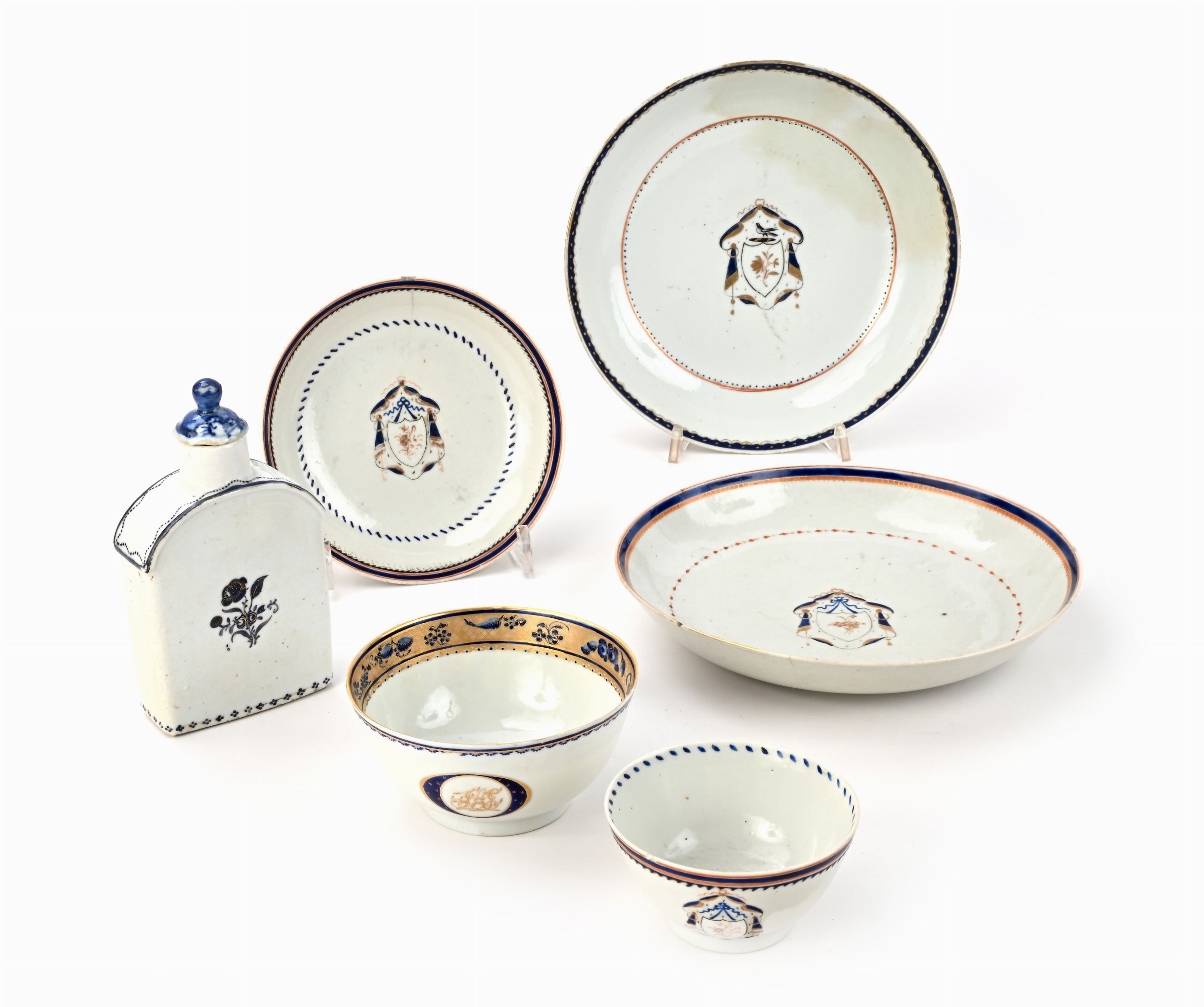 Lotto di sei porcellane diverse con profili blu, Compagnia delle Indie, XVIII se [..]