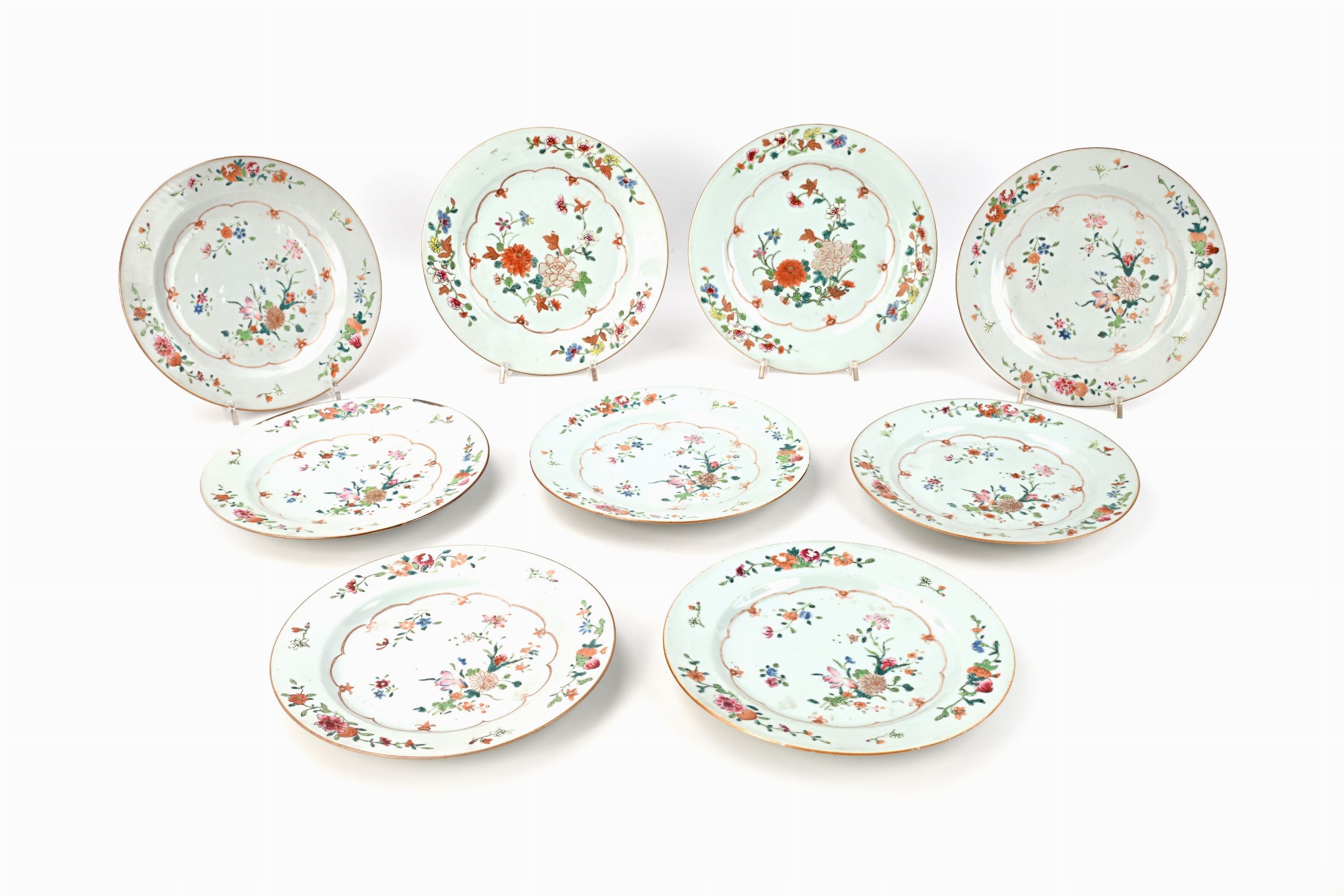 Nove piatti in porcellana policroma a motivi floreali, Compagnia delle Indie, XVIII [..]