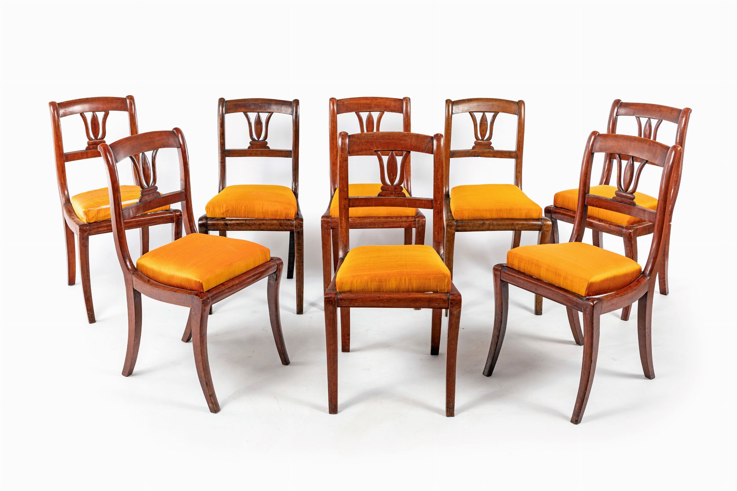Otto sedie in legno di frutto, XIX secolo  - Asta Collezioni Private - Mobili, Oggetti d'Arte e Dipinti Antichi e del XIX Secolo - Associazione Nazionale - Case d'Asta italiane