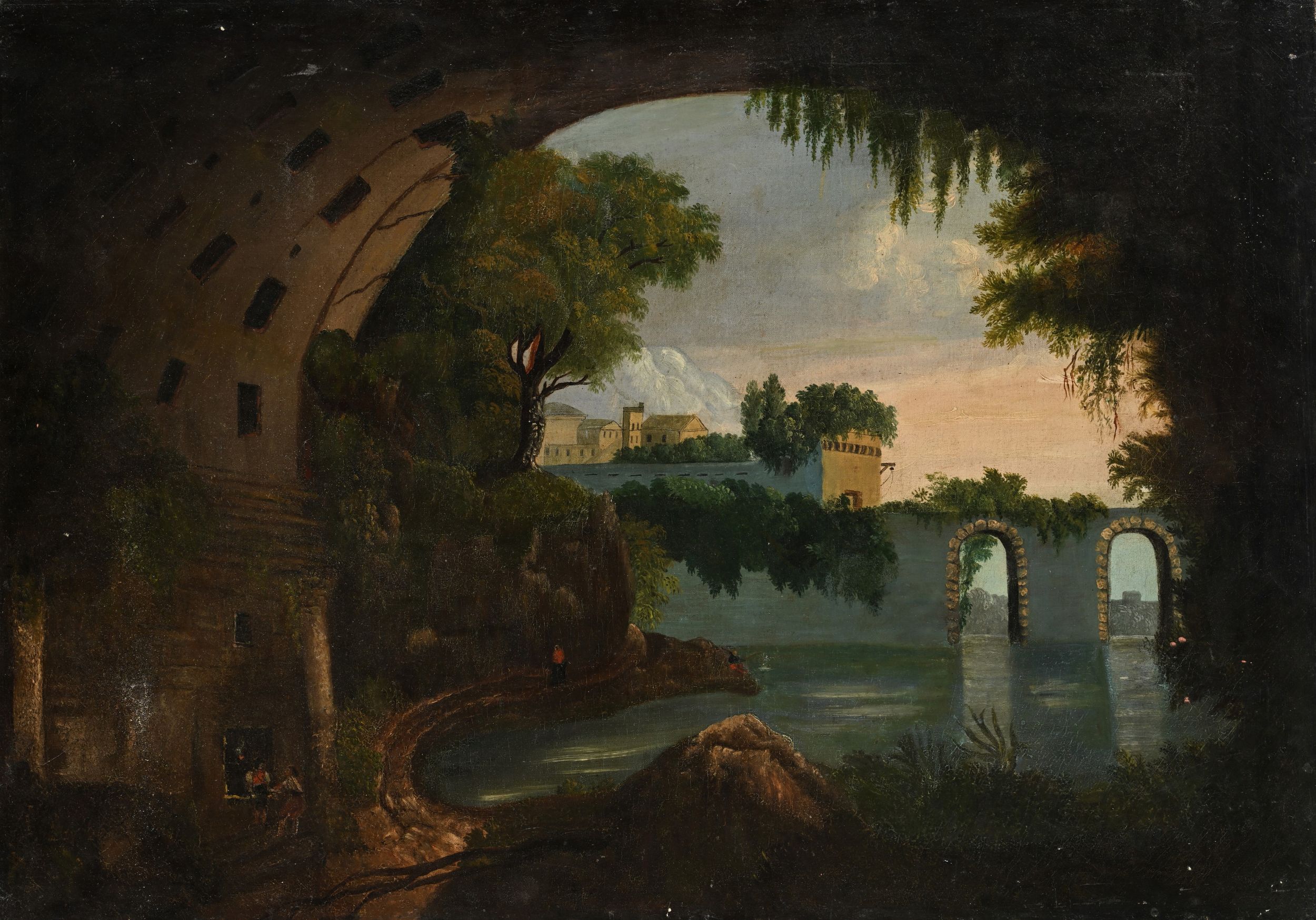 Paesaggio con lago e archi