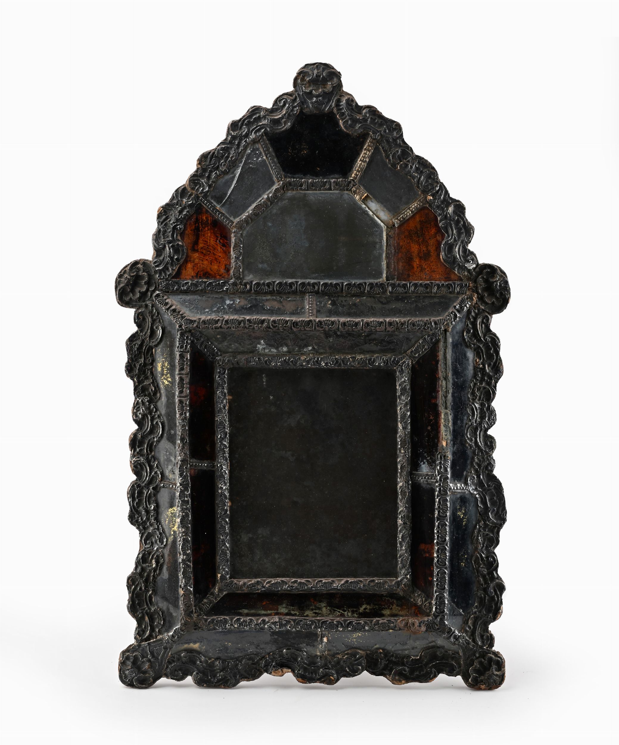 Piccola specchiera in legno e lamina di metallo argentato sbalzato, Olanda, XVIII [..]