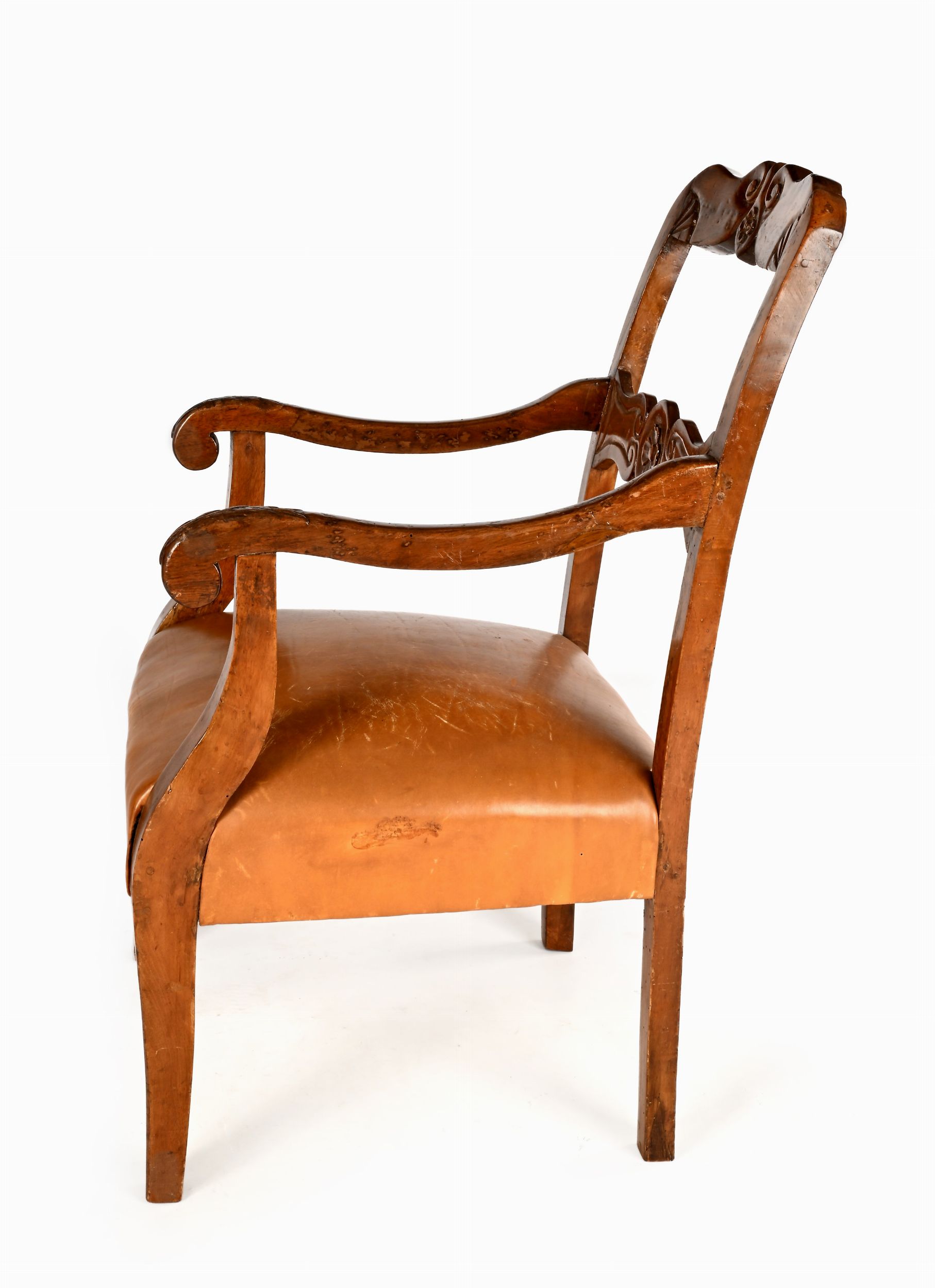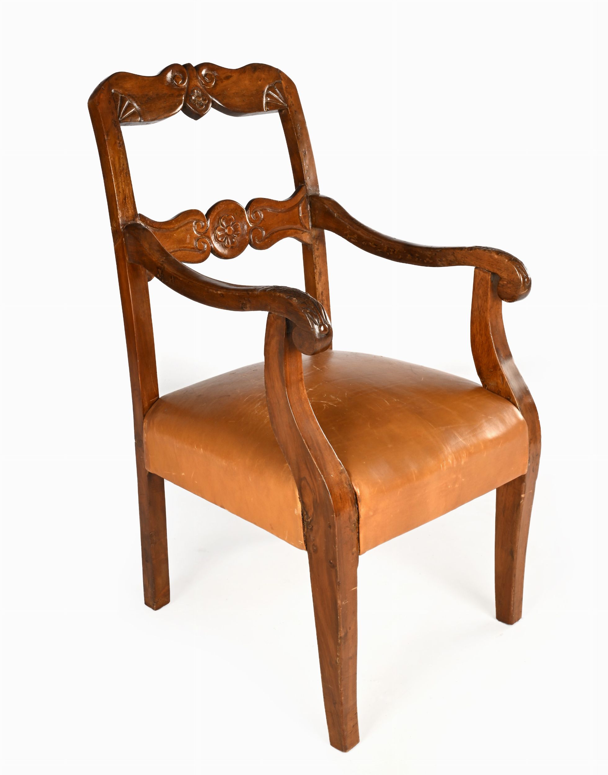 Poltrona in noce con sedile imbottito in cuoio, XIX secolo