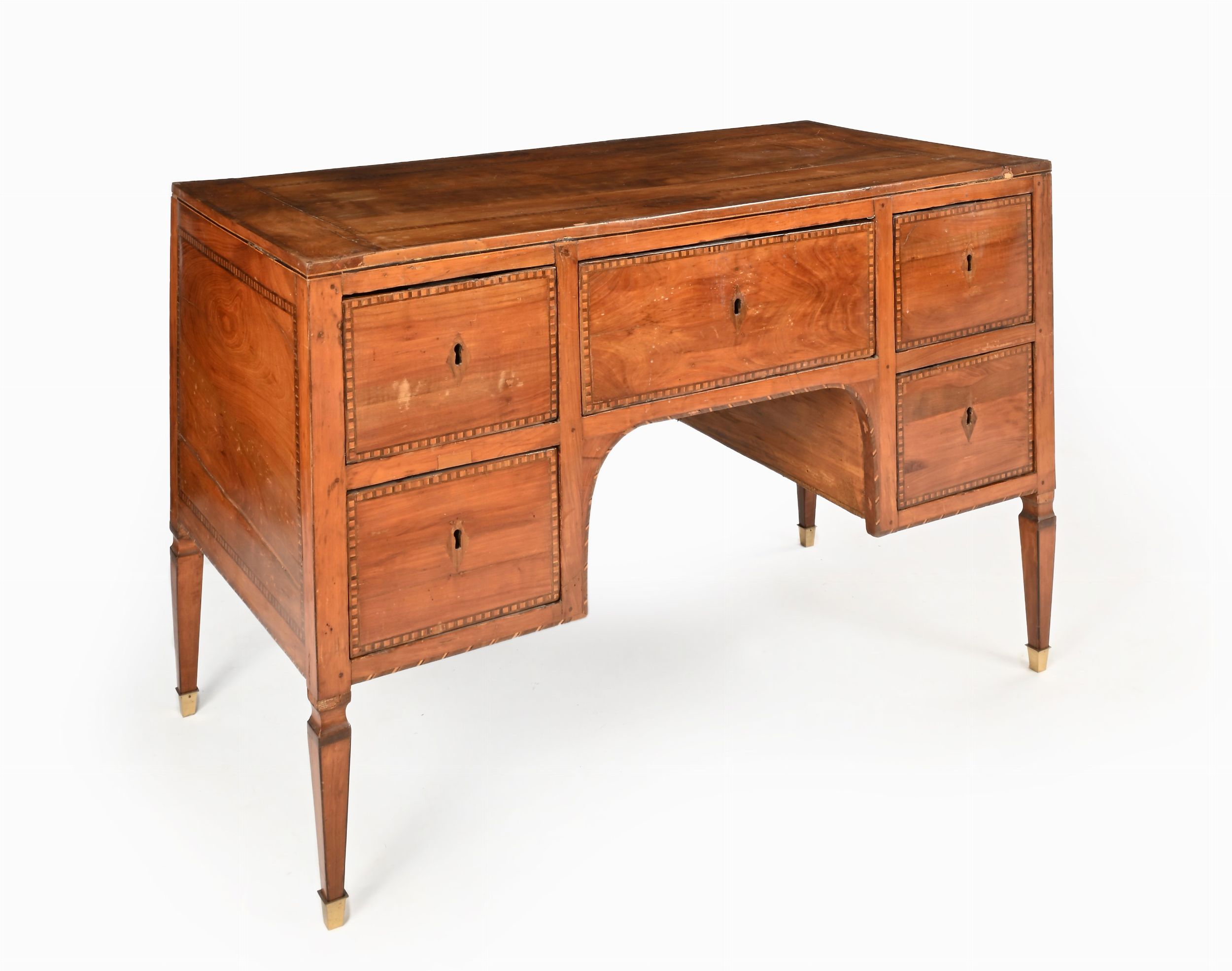 Scrivania da centro a bancone in noce con profili intarsiati, Italia centrale, fine [..]