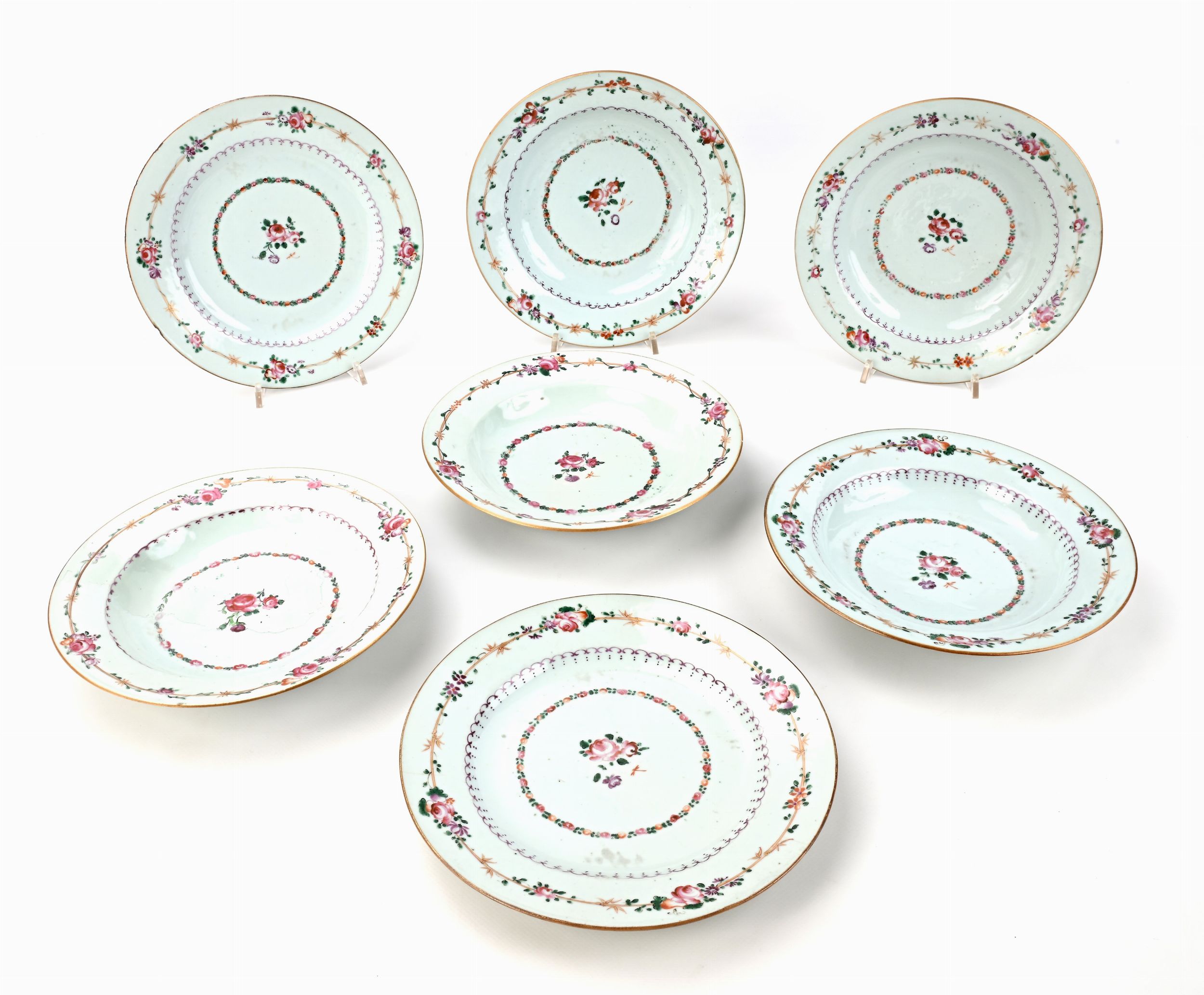 Sette piatti in porcellana policroma con ghirlande e rose, Compagnia delle Indie, [..]