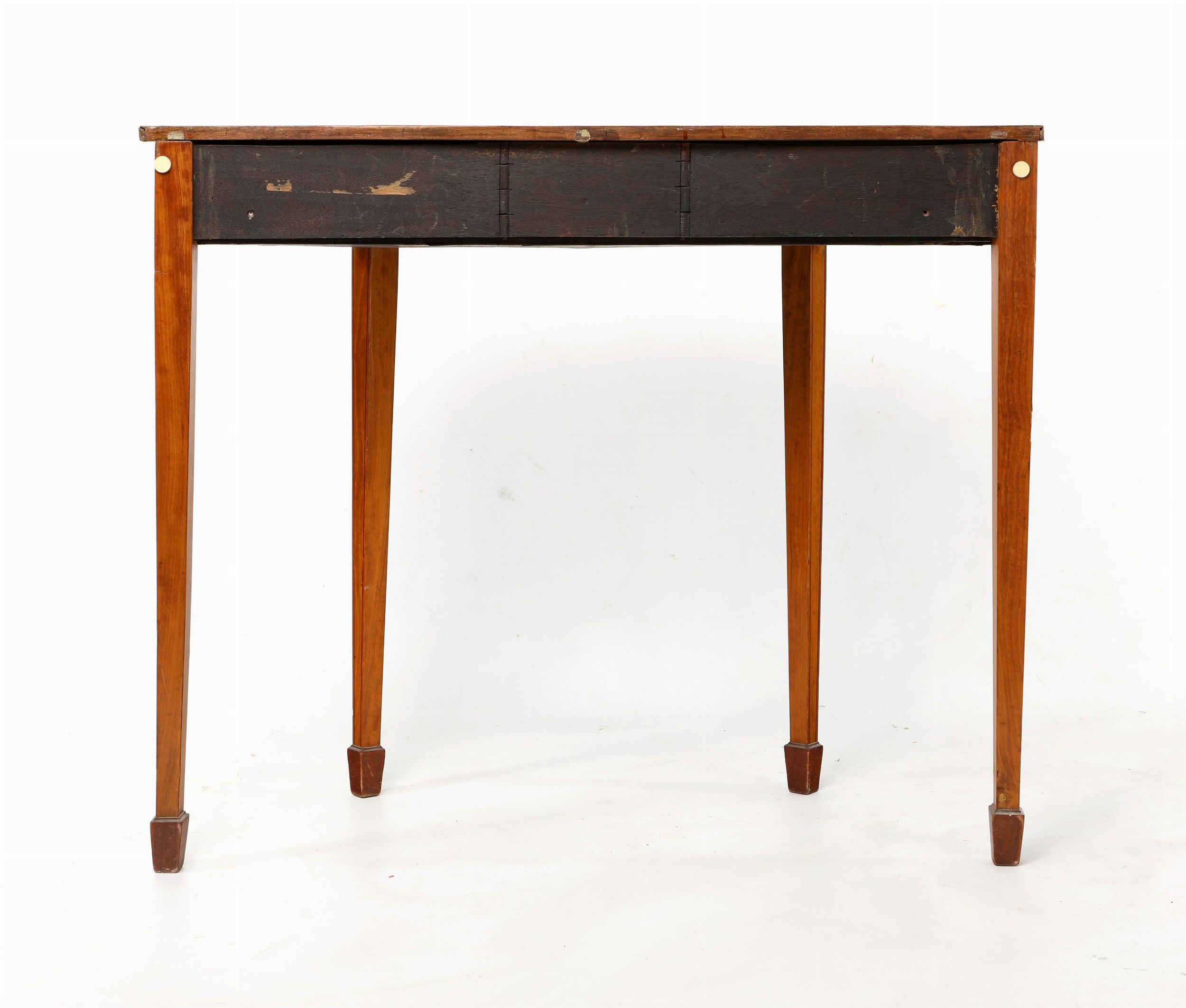 piano decorato a raggiera definita da sottili filettature lineari riprese a cornice delle varie partizioni; gambe rastremate. Difetti