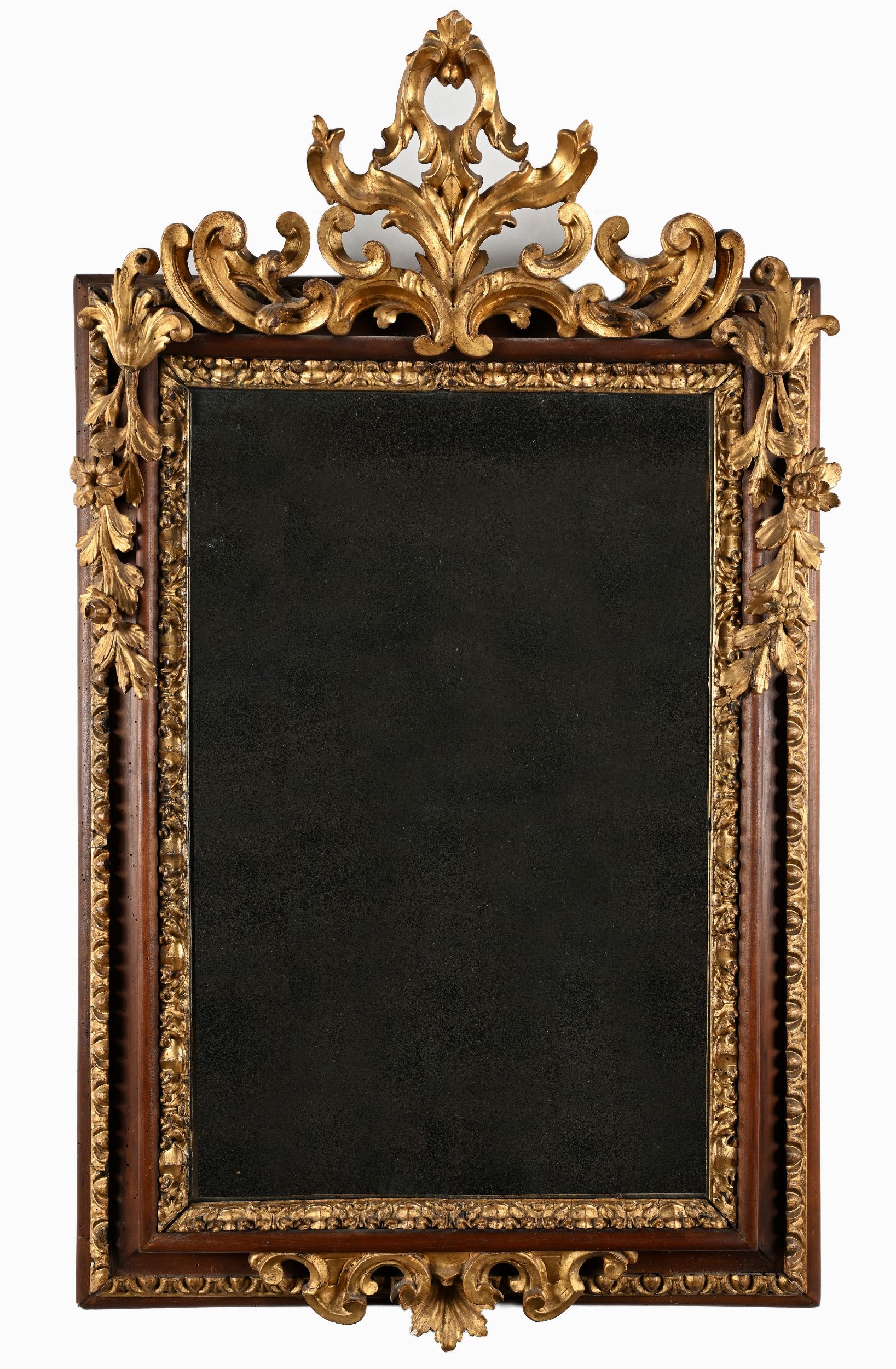 Specchiera in legno color noce e legno dorato, Roma, XVIII secolo