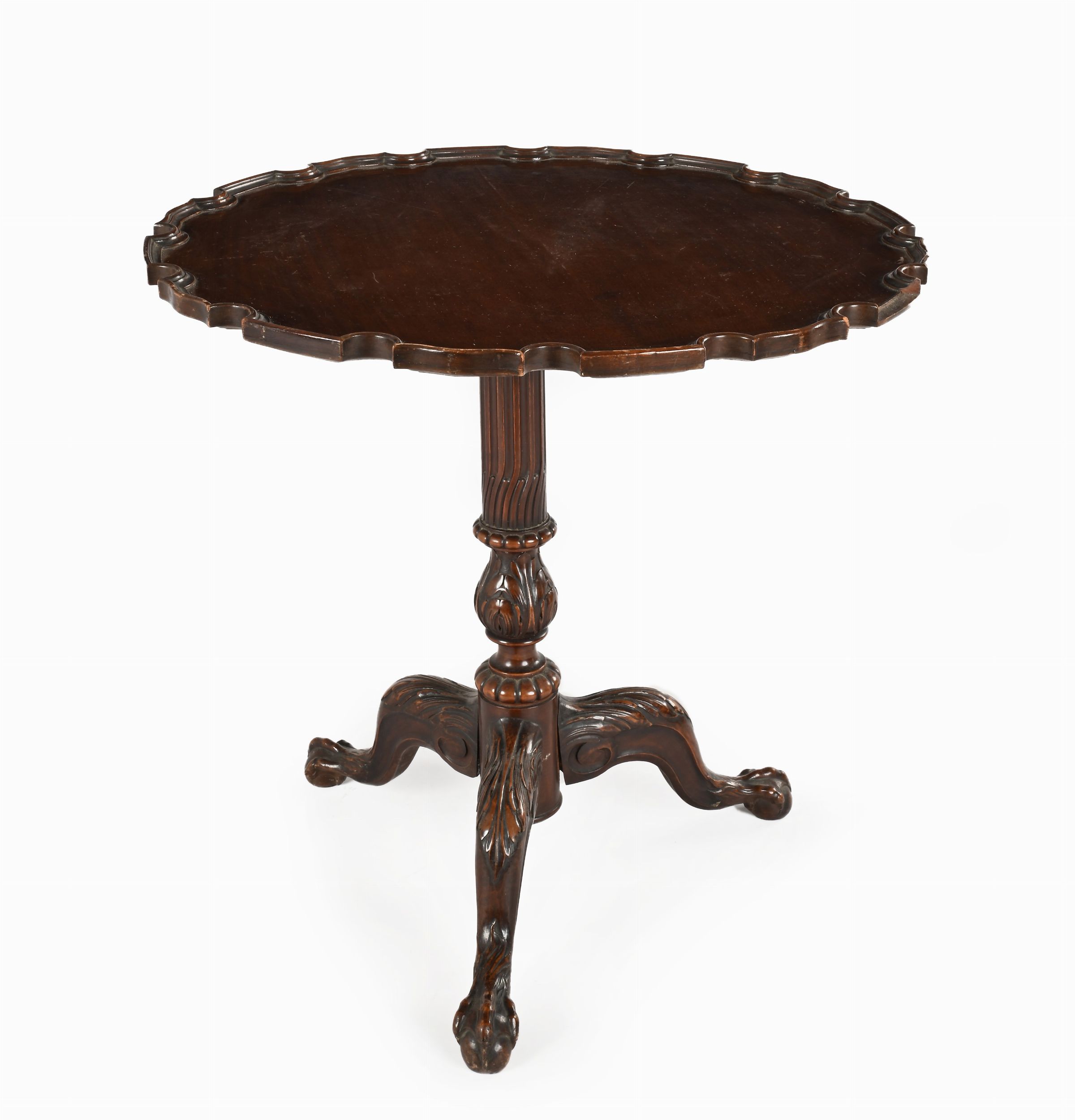 Tavolino in mogano con piano circolare caratterizzato da incavi lungo la circonferenza, [..]