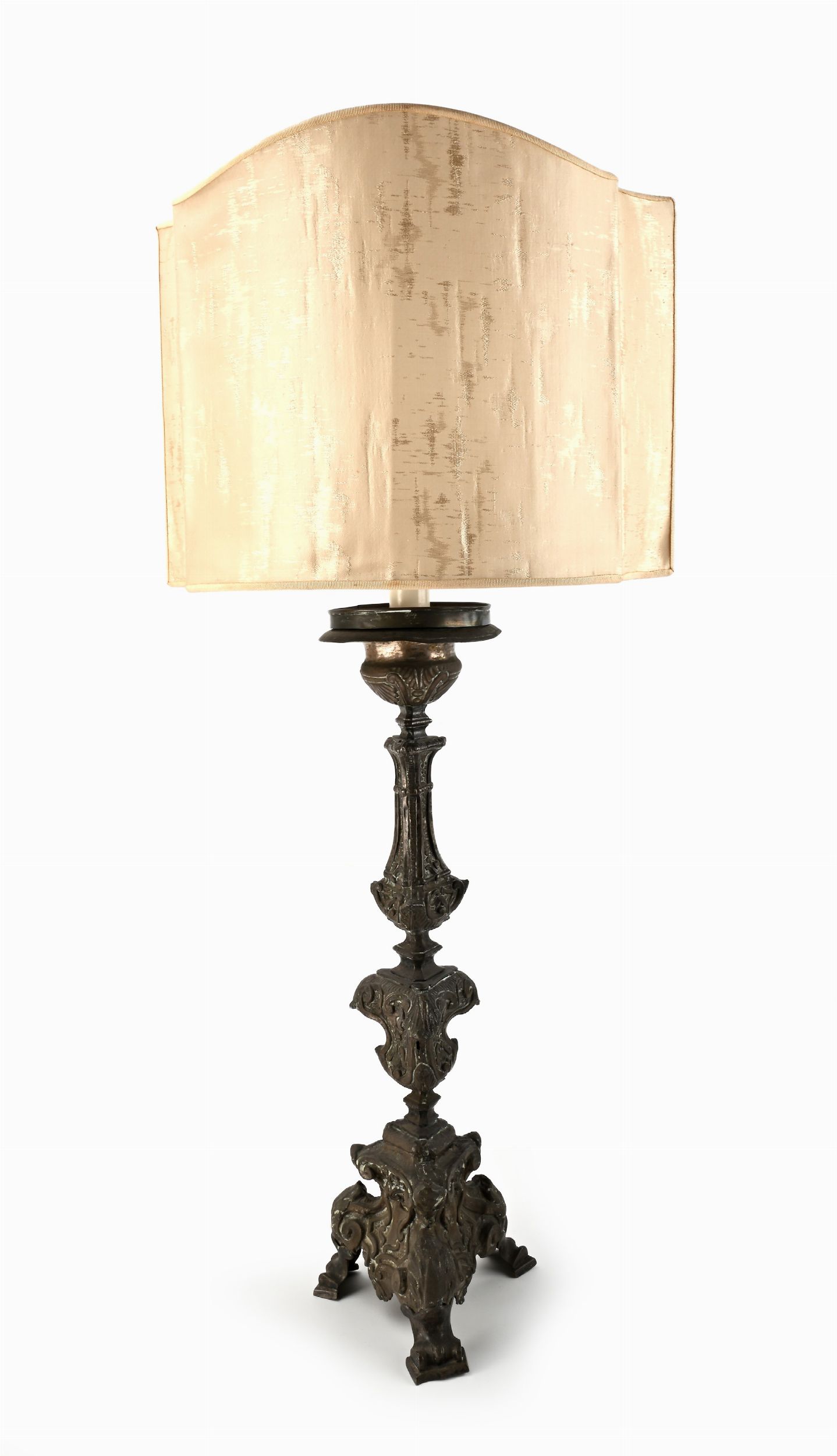Torciera in legno rivestito di metallo sbalzato a motivi vegetali, XVIII secolo