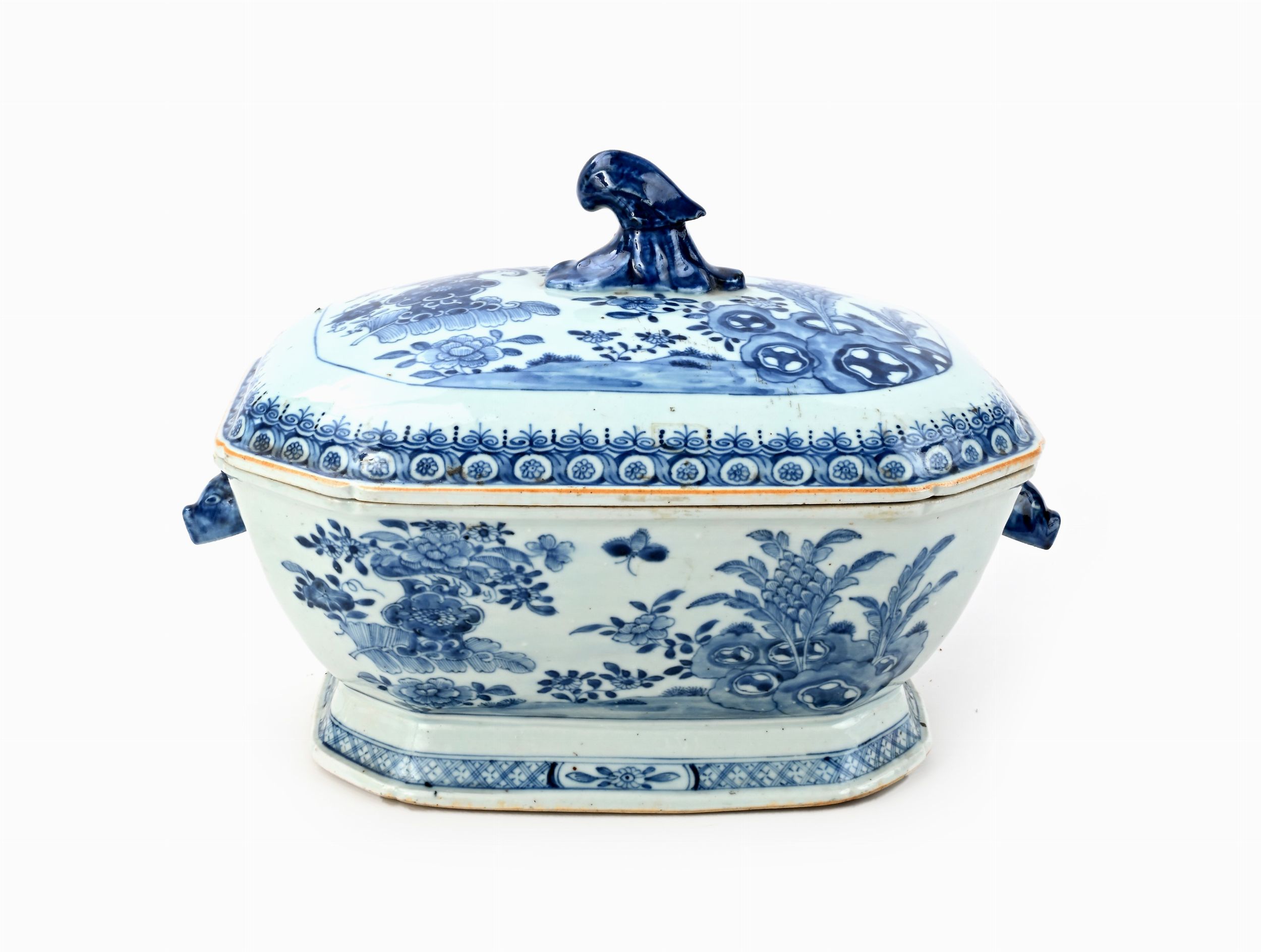 Zuppiera con coperchio in porcellana bianca e blu, Cina