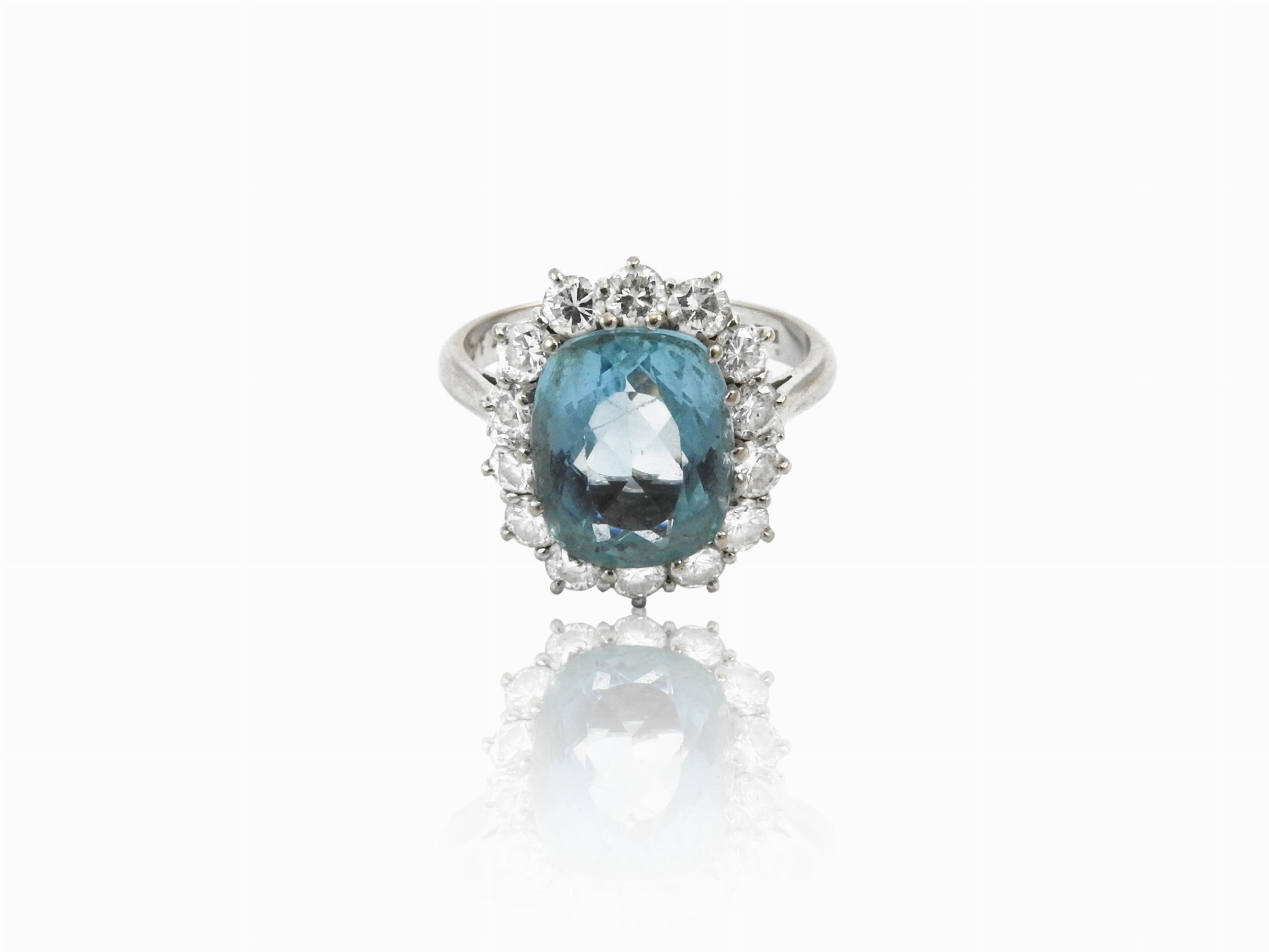 Anello a margherita in oro bianco con diamanti e acquamarina
