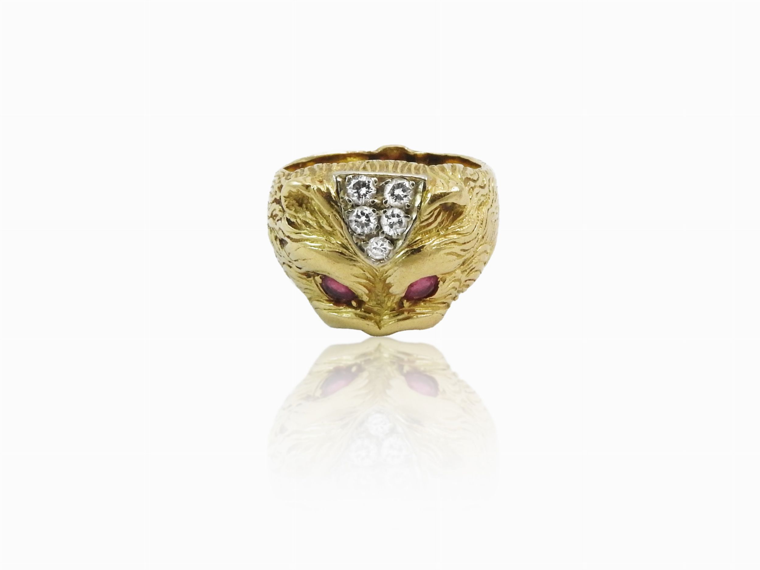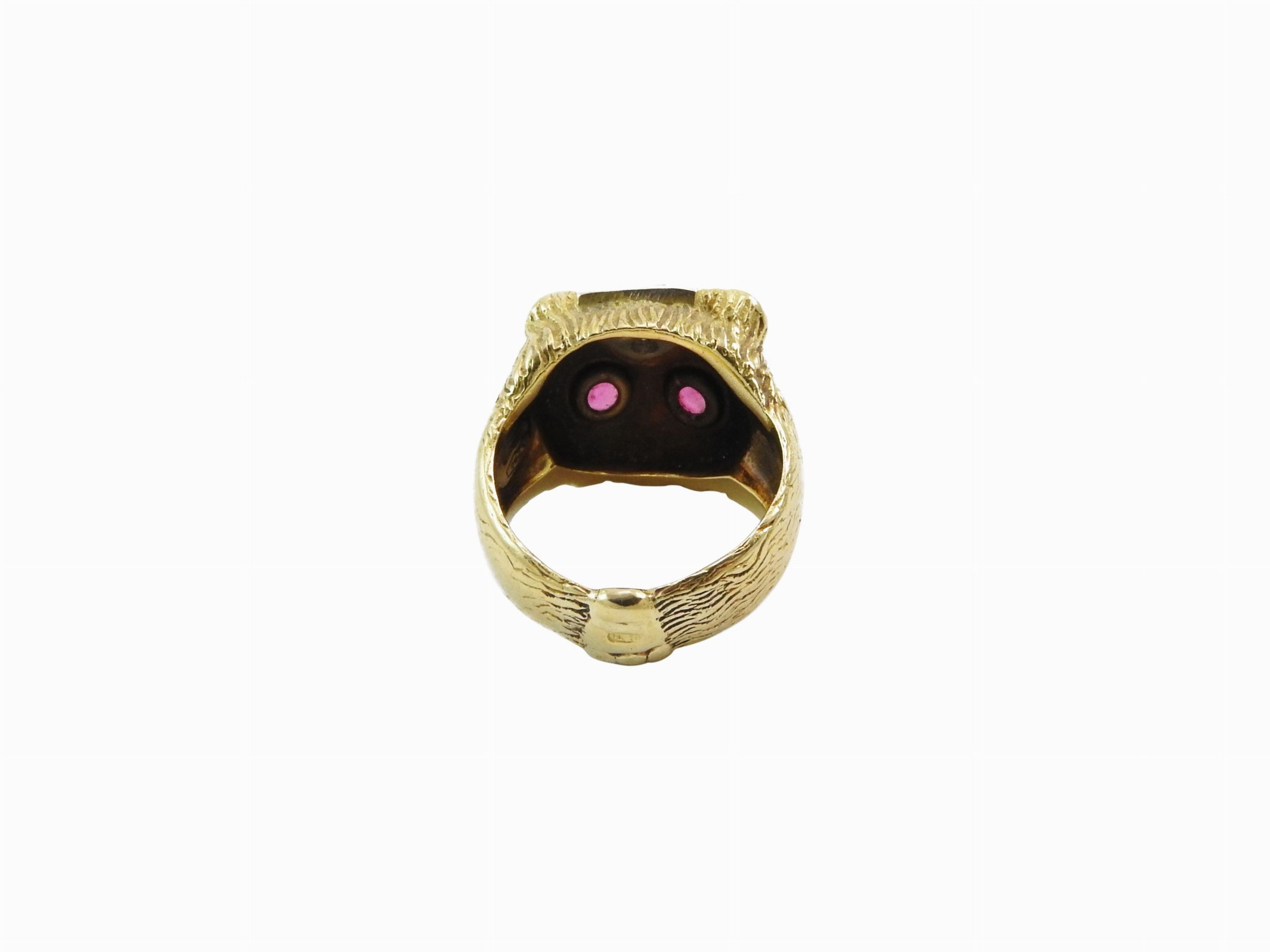 Anello da mignolo animalier in oro giallo con diamanti e rubini