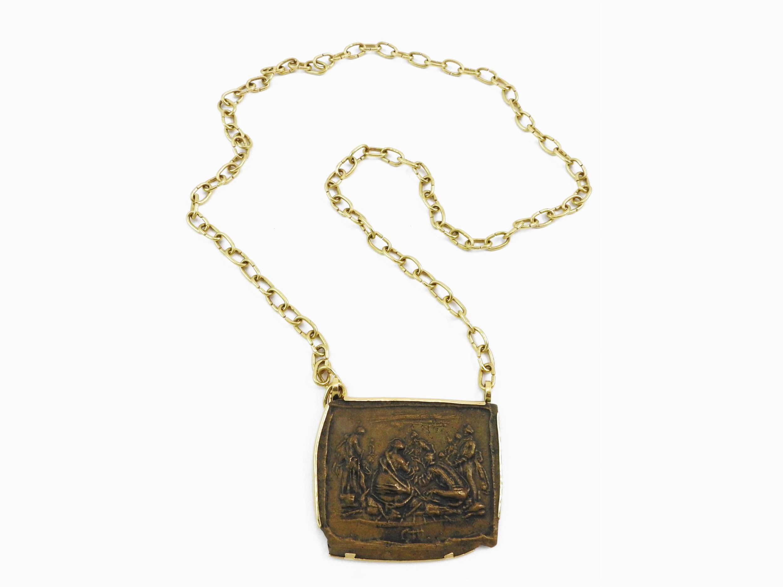 Placchetta a bassorilievo in bronzo, montata in oro giallo, 1973