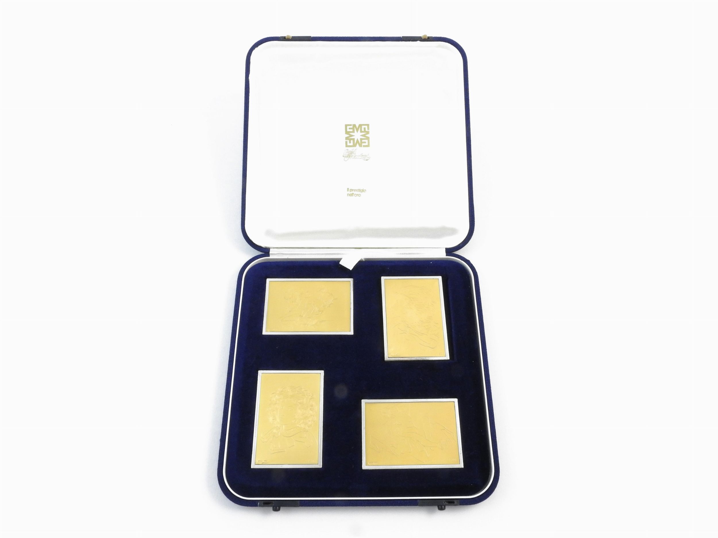 Quattro incisioni su lastra in oro 999,8/1000 con supporto in argento 925/1000