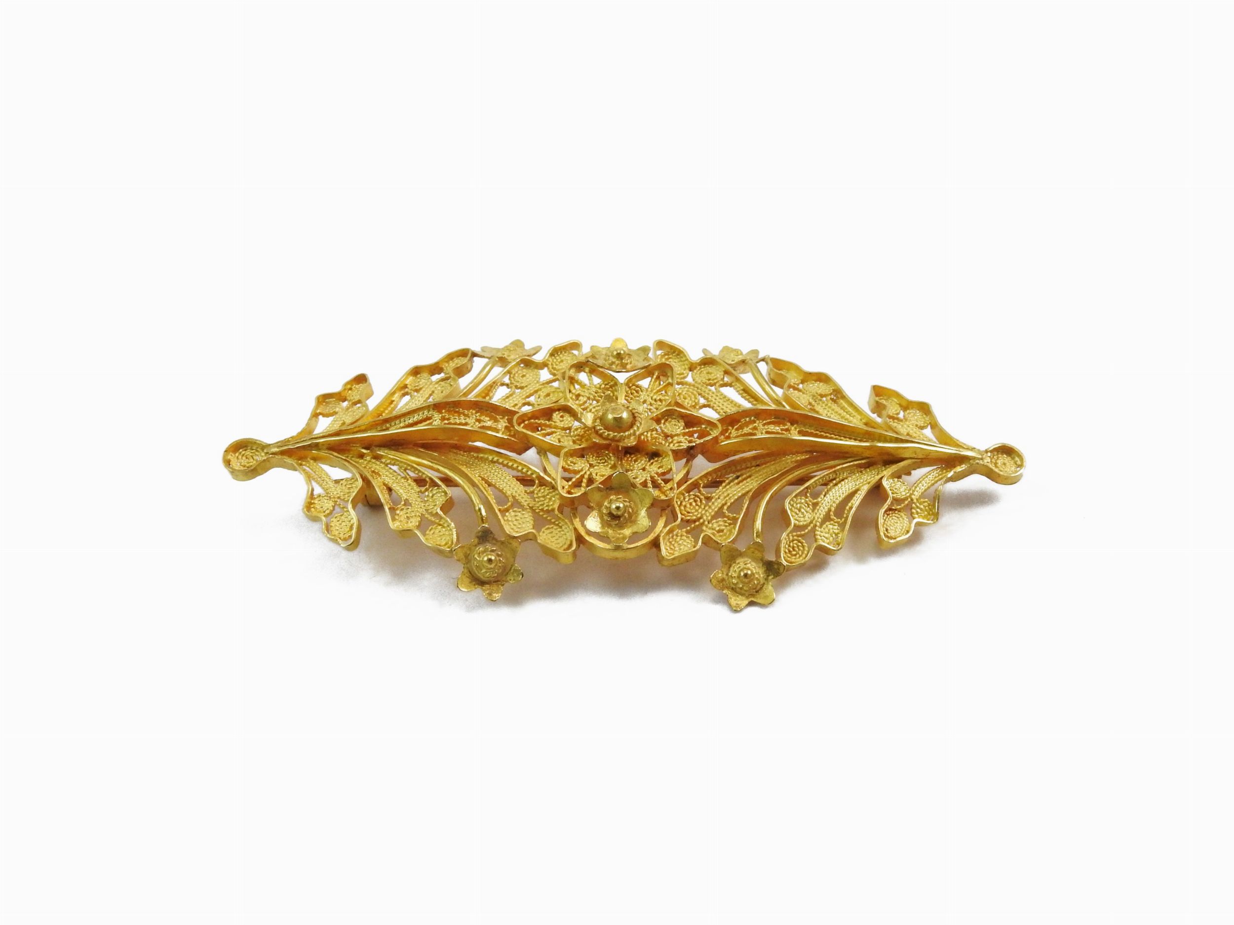 Spilla lavorata a filigrana in oro giallo