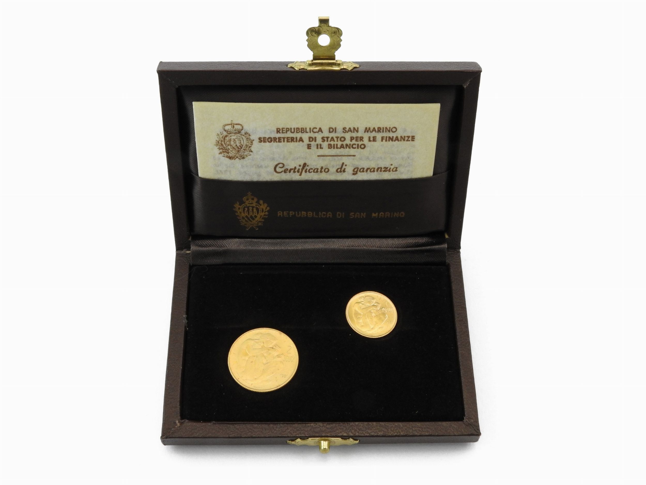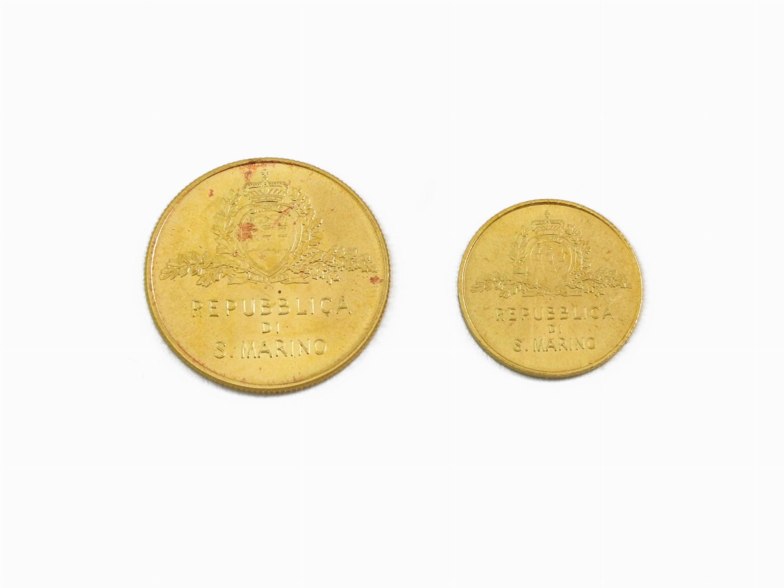 Una serie da 1 e 2 scudi San Marino in oro 916/1000
