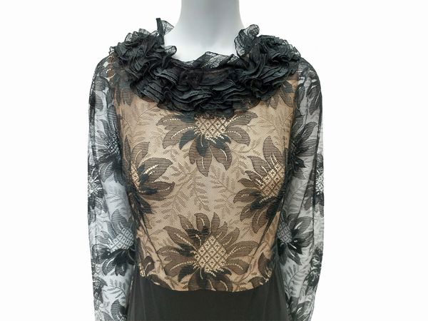 Anni Settanta/Ottanta corpetto beige, elaborato orlo a balze