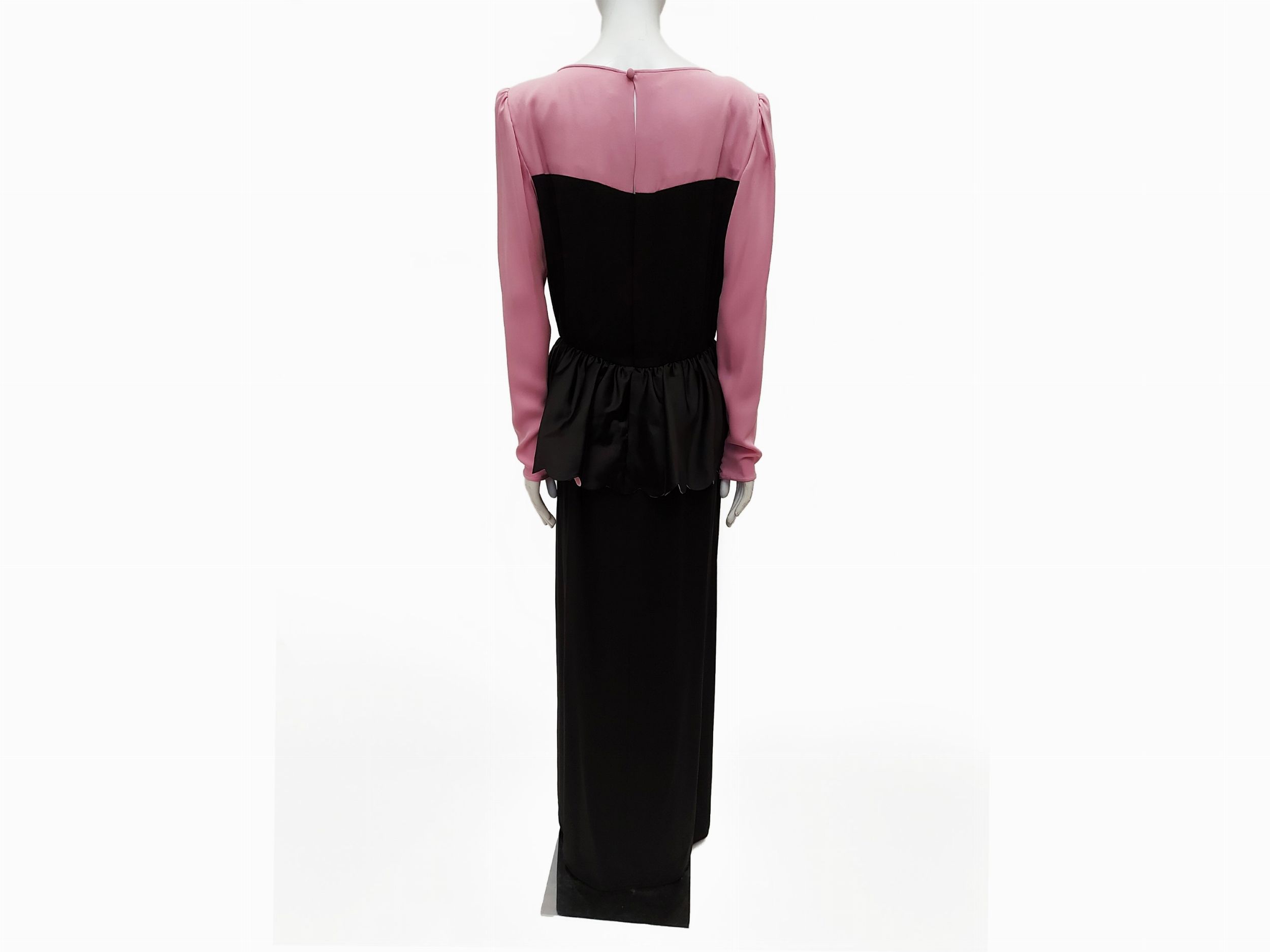 Anni Settanta con baschina in vita in raso nero/rosa e spacco laterale