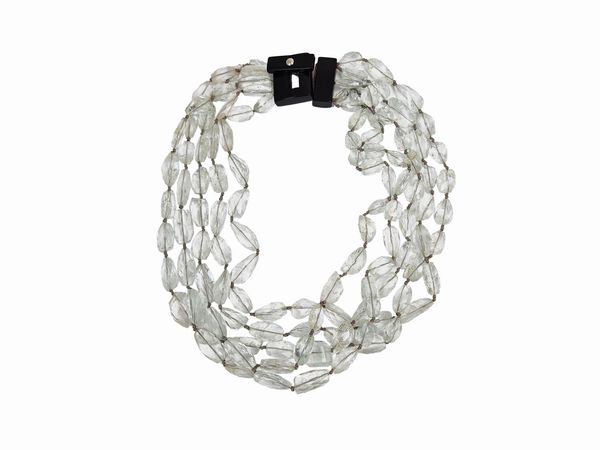 Collana multifilo in cristallo di rocca con fermezza in ambroide