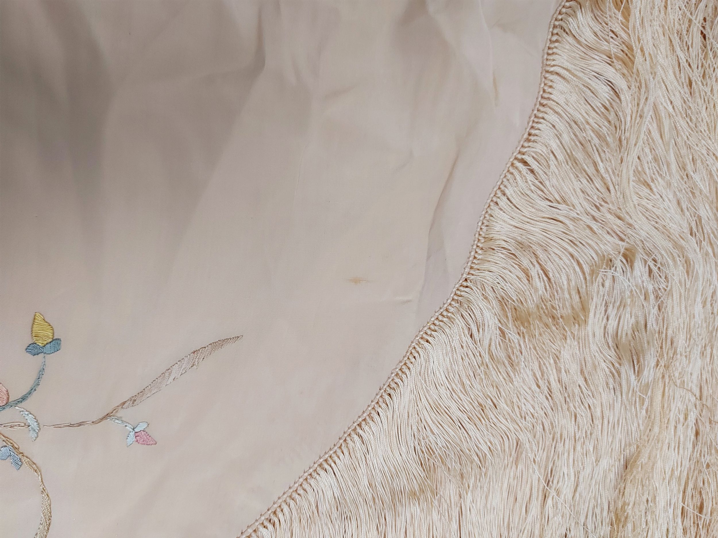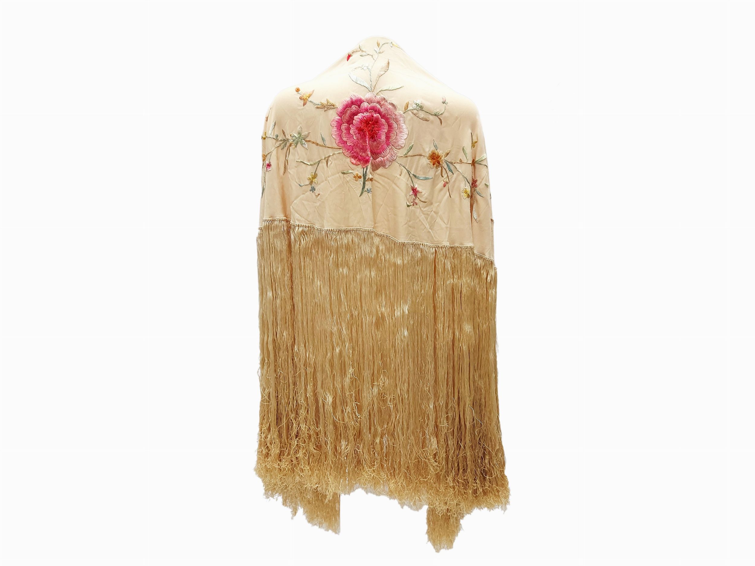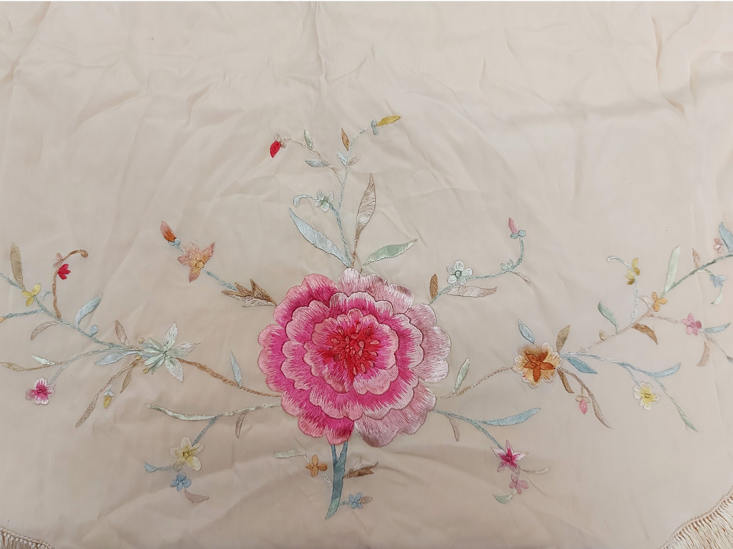 Grande scialle in seta beige con ricamo floreale