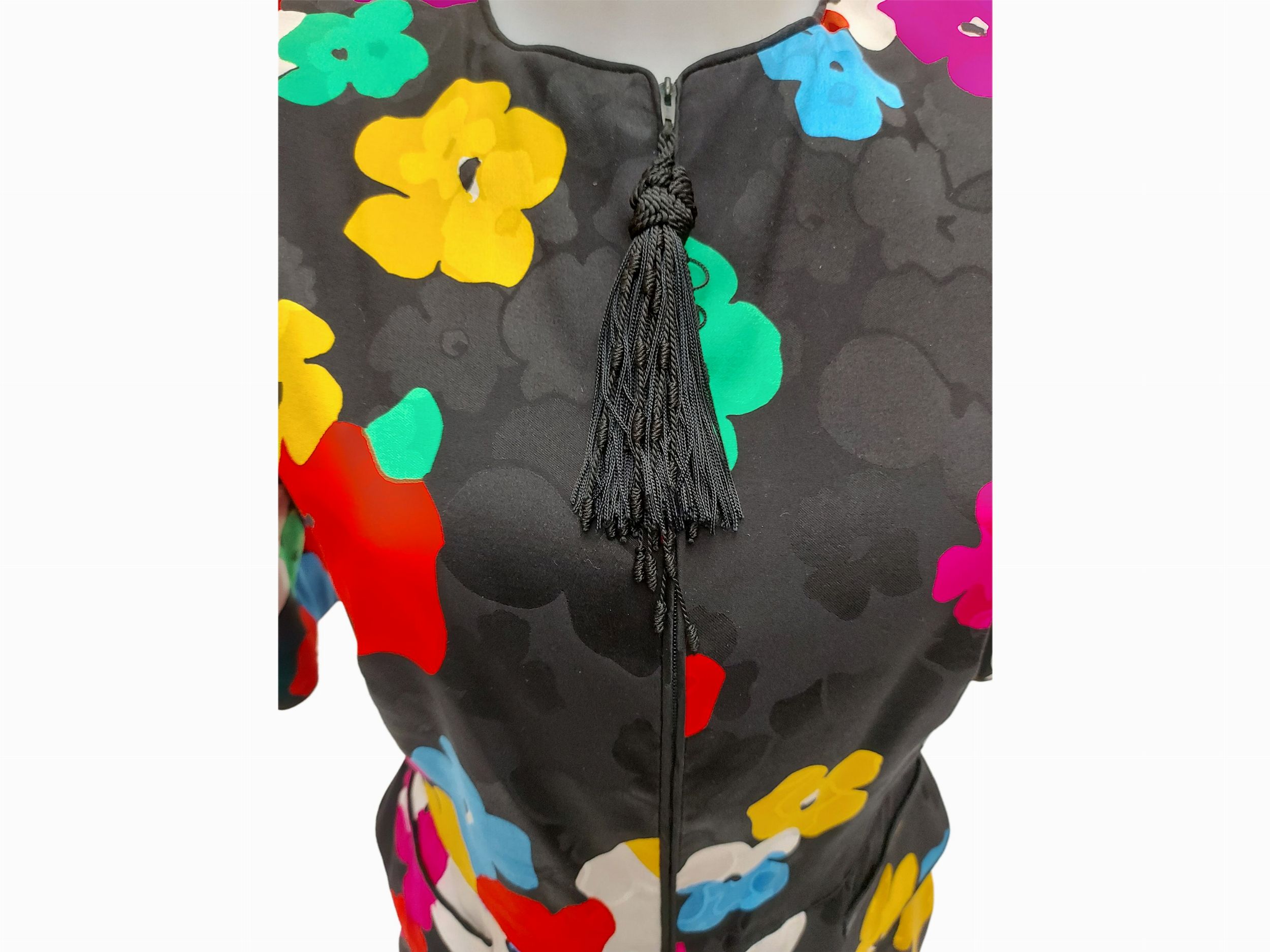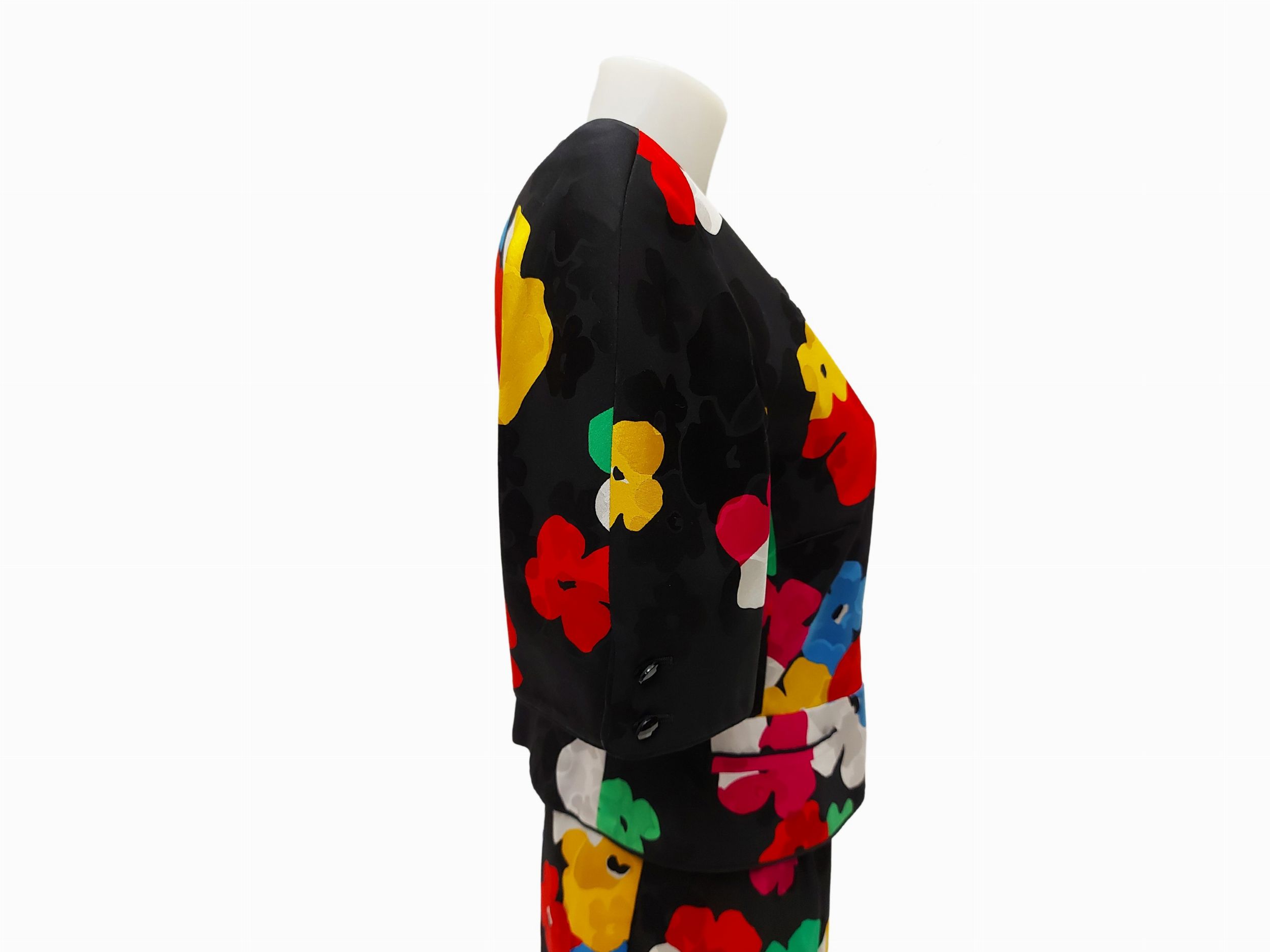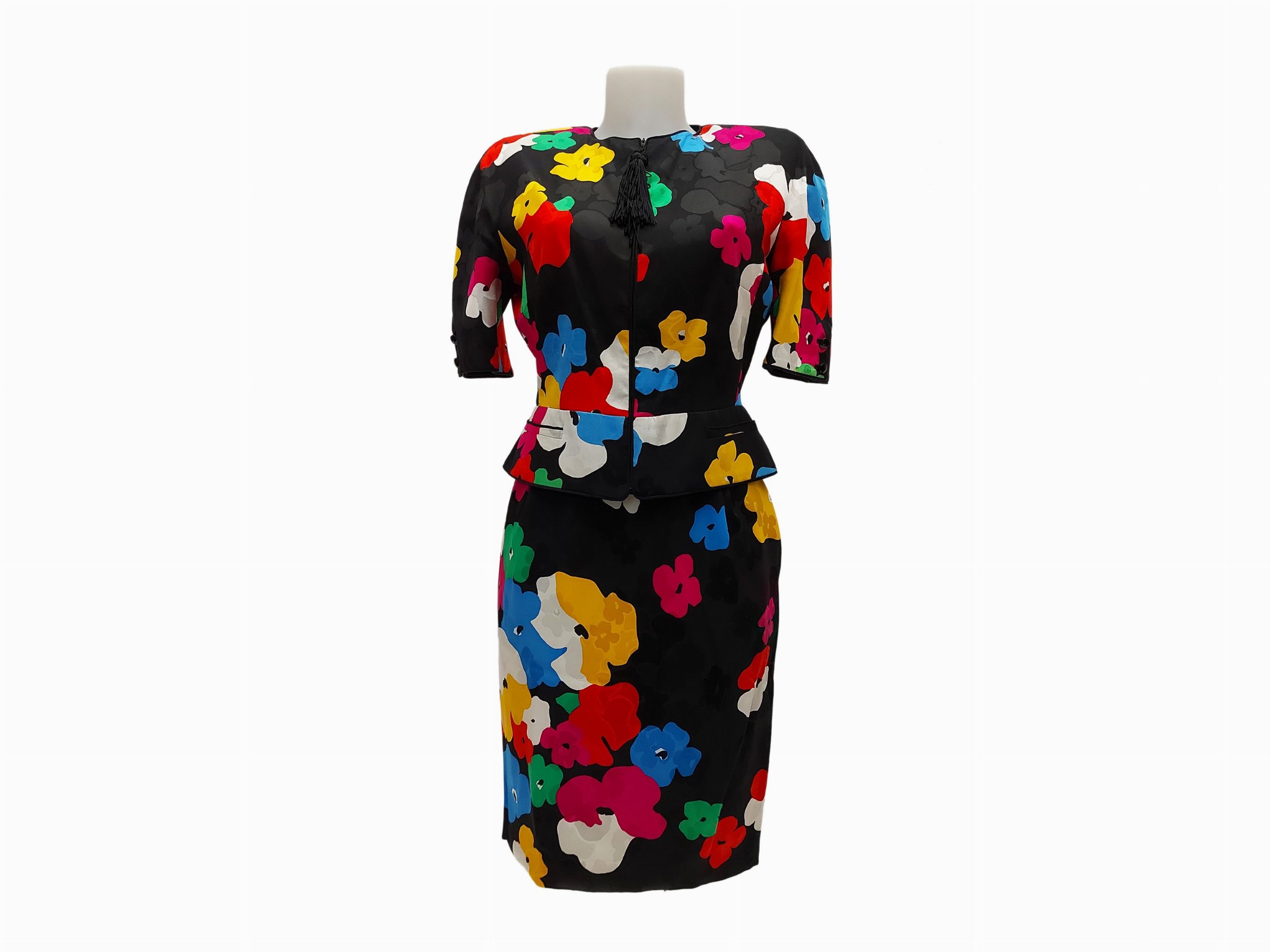 Night Valentino - Tailleur in seta fantasia floreale su fondo nero