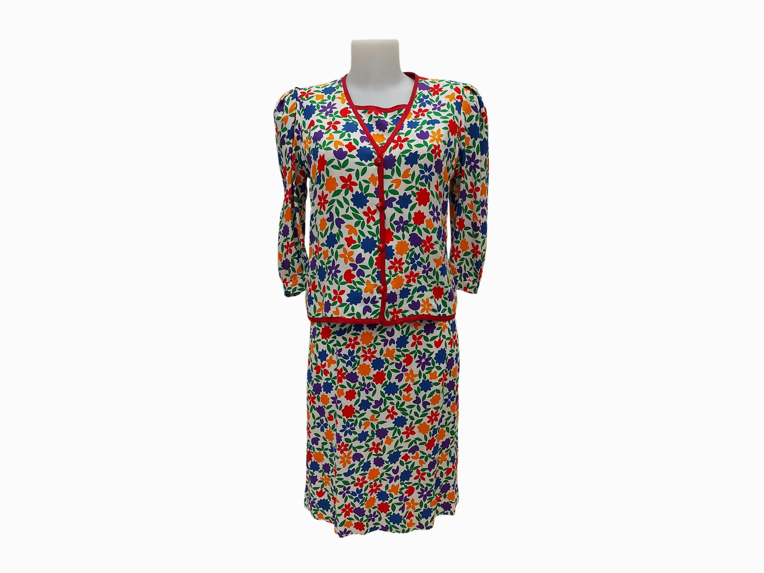 Saint Laurent rive gauche - Tailleur tre pezzi in crepe di seta a motivo floreale [..]