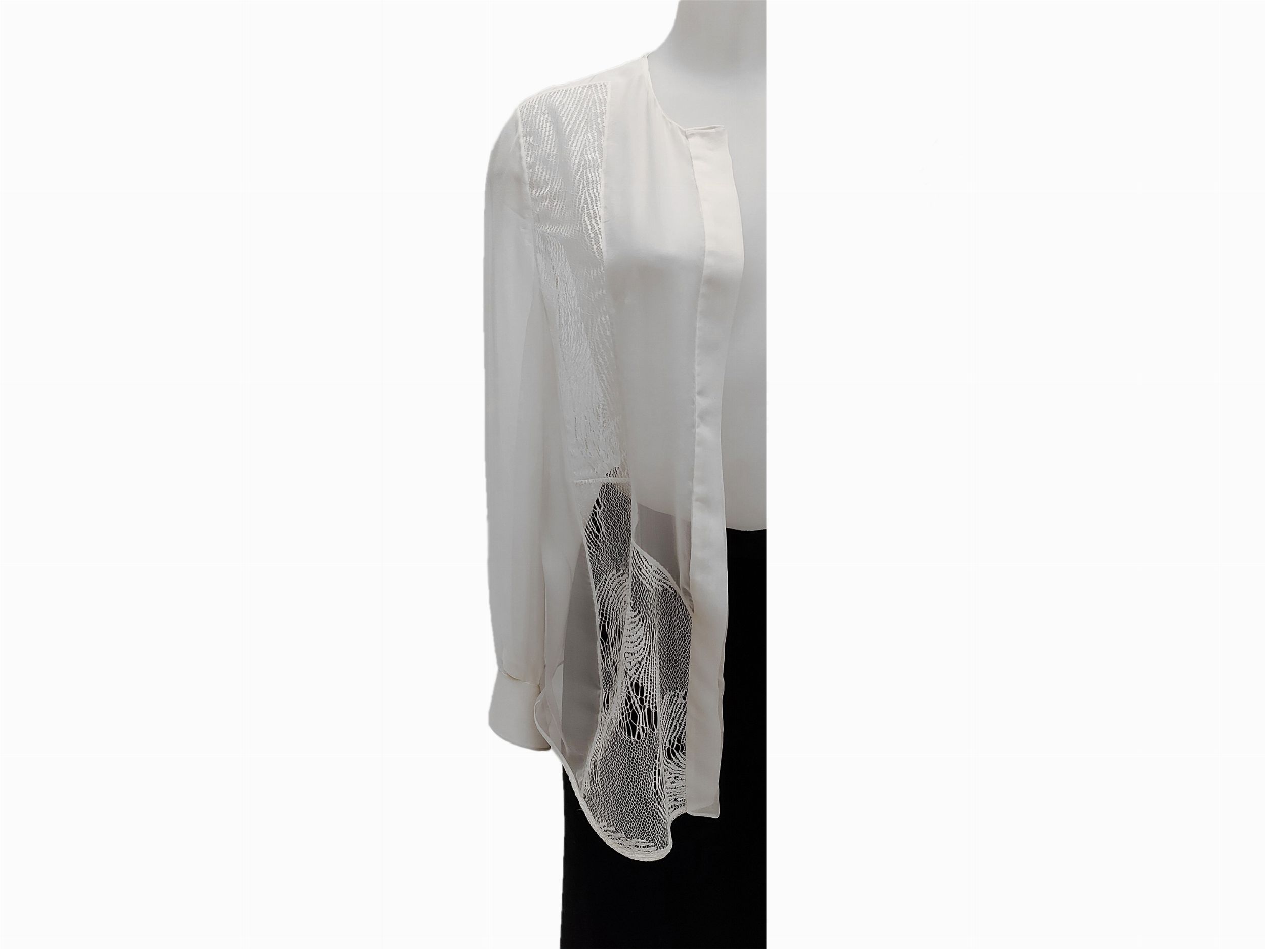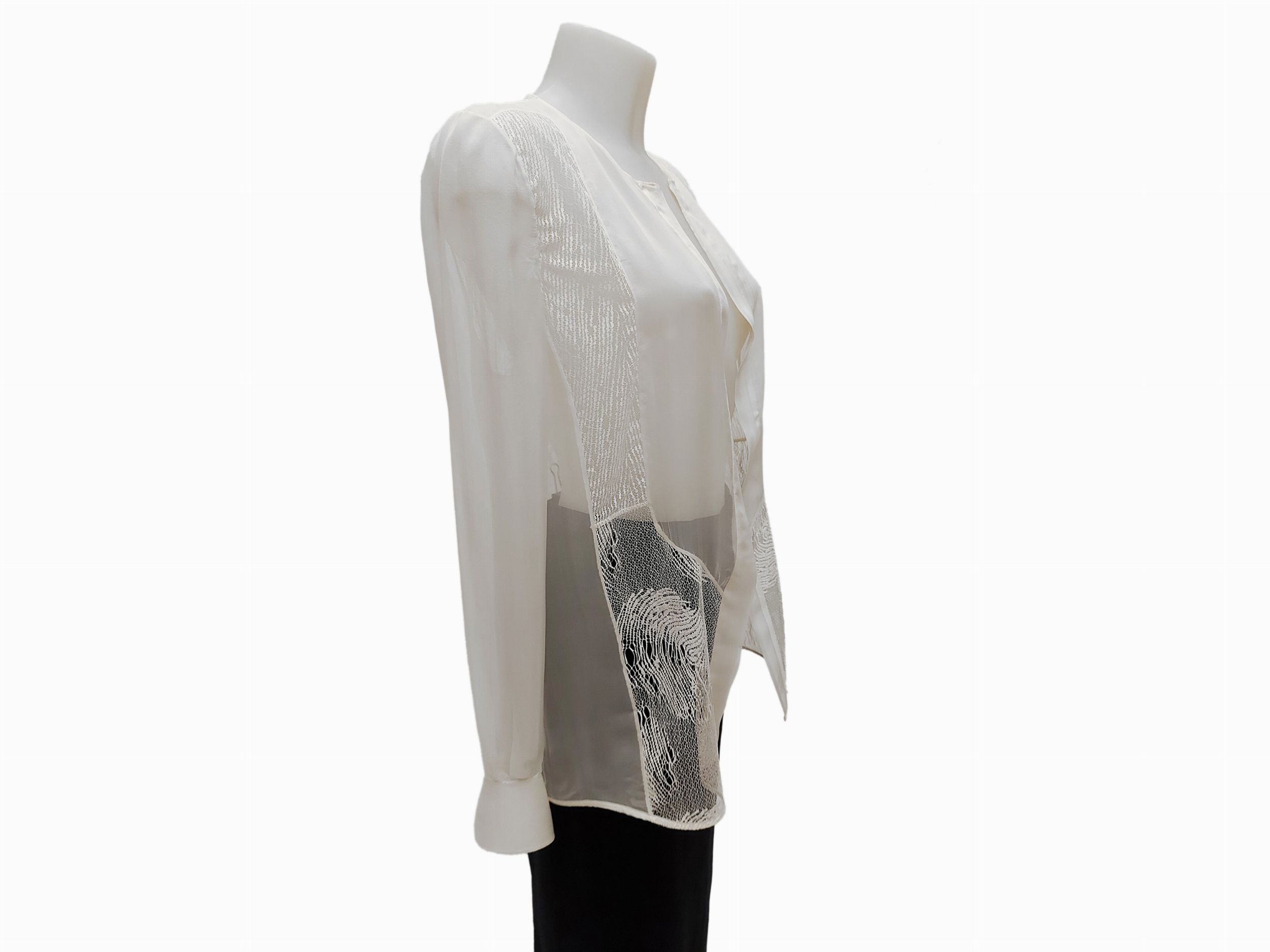 Salvatore Ferragamo - Camicia traforata in voile di seta cipria