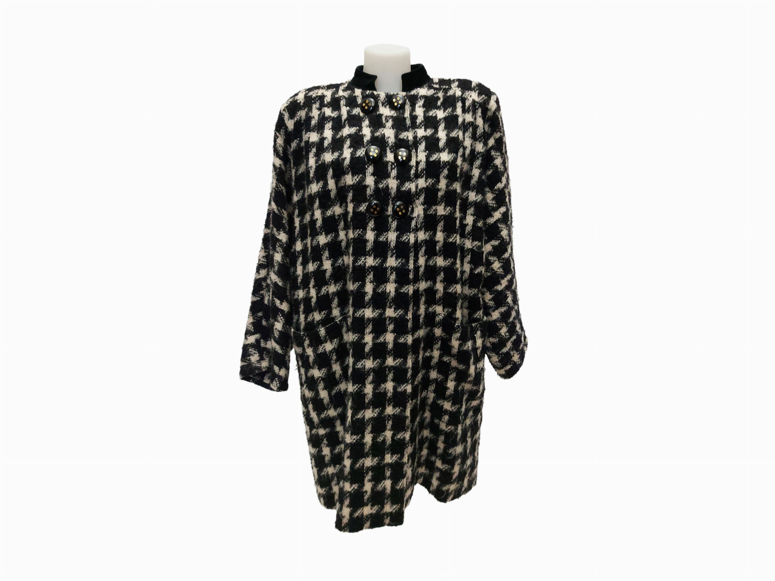 Valentino - Cappotto in lana bouclé pied de poule bianco e nero