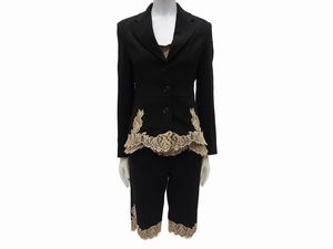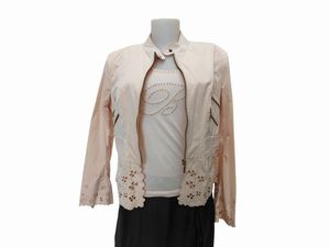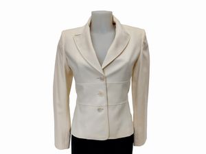 tg S Anni Cinquanta/SEssanta con applicazioni color panna, smanicato, lievi segni d'uso