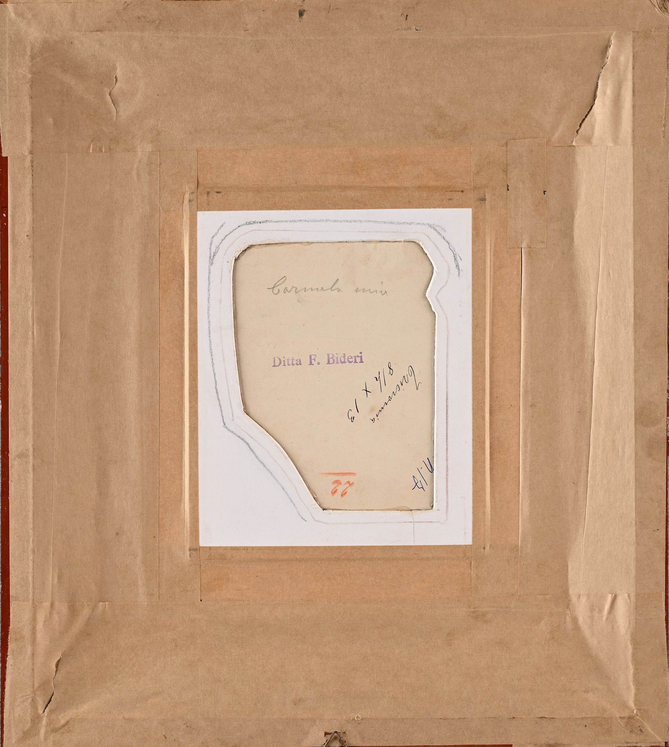 Firmato due volte in basso a sinistra: 'P. Scoppetta'. Sul retro titolo, timbro 'Ditta F. Bideri' e numeri di riferimento.