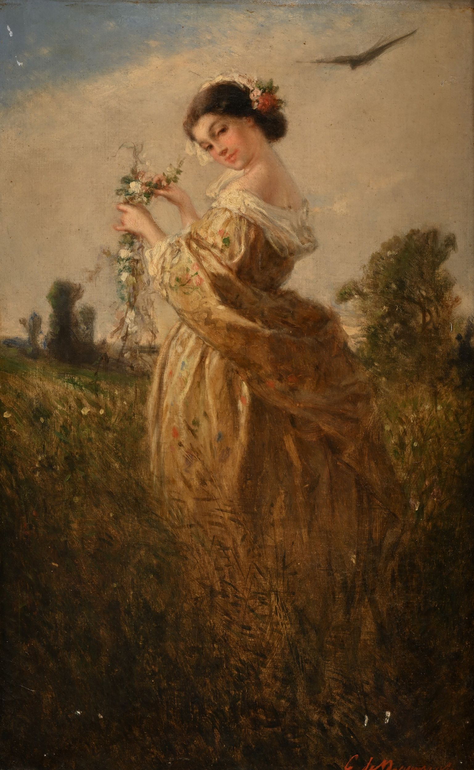 Firmato in basso a destra: 'E de Beaumont'. Sul retro antico cartellino con numero di riferimento (3).