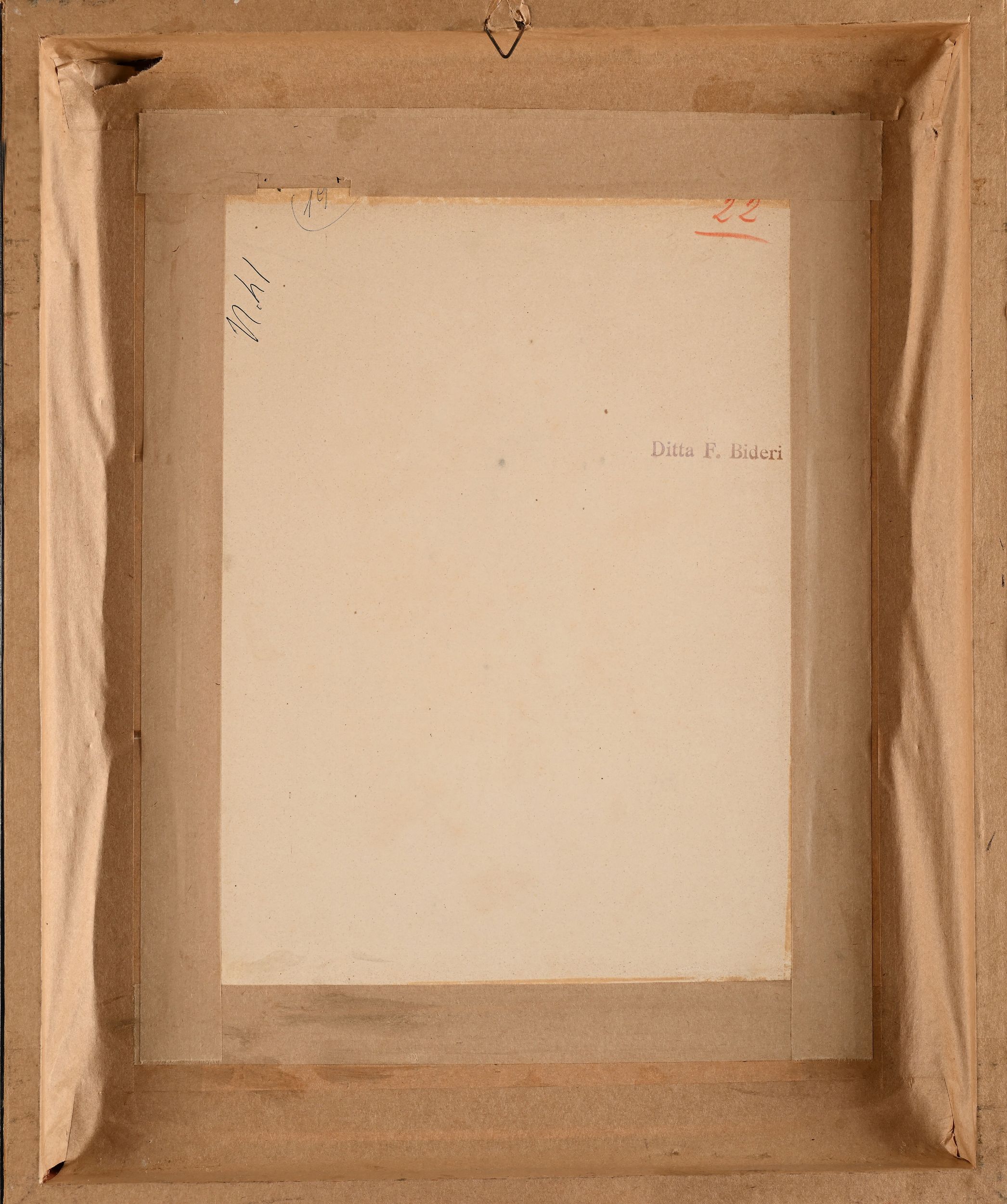 Intitolato in basso a sinistra e firmato in basso a destra: 'P. Scoppetta'. Sul retro timbro 'Bideri' e numeri di riferimento.