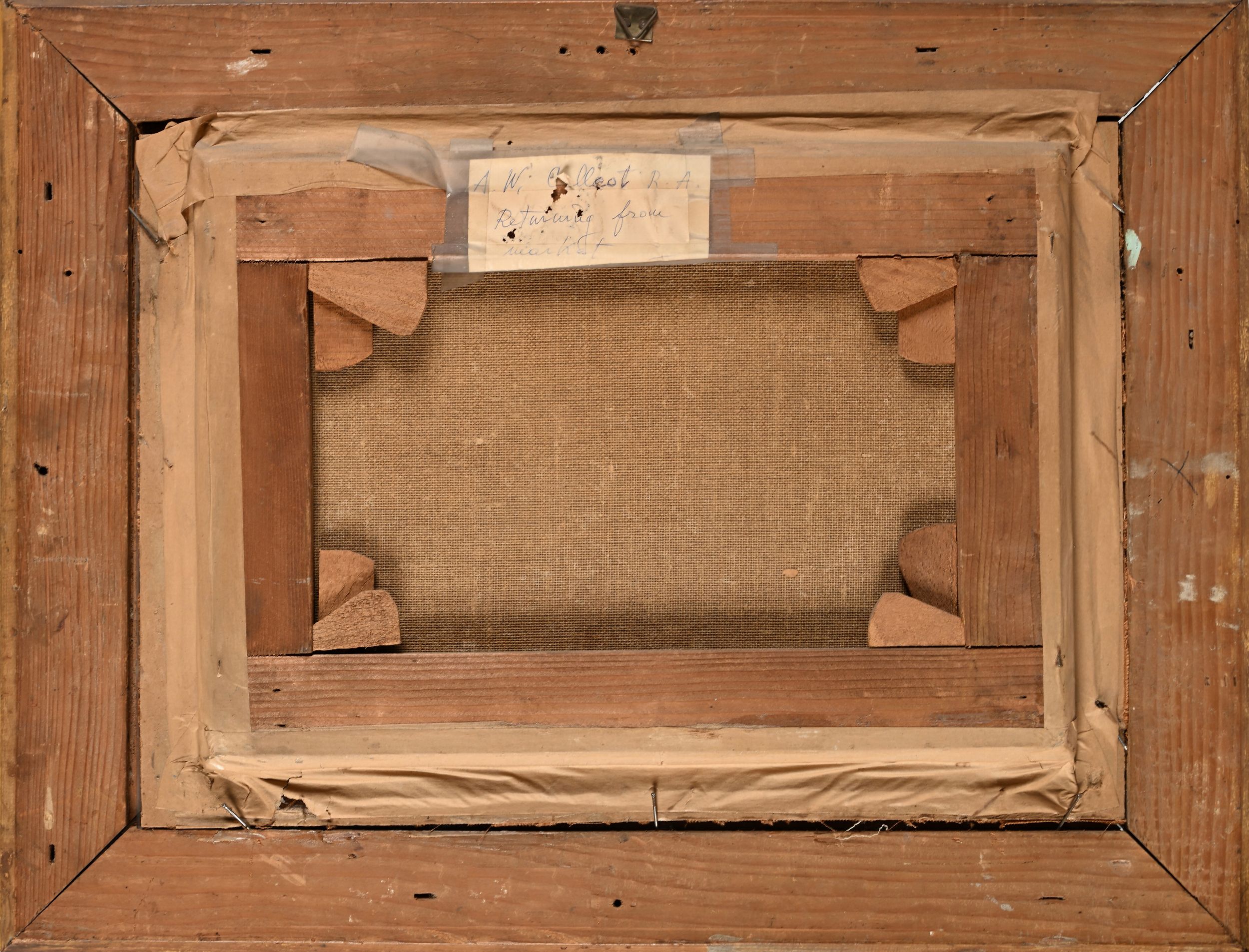 Tracce di firma e data in basso a destra. Sul retro, sulla cornice, vecchio cartellino con scritto il nome dell'autore e il titolo dell'opera.