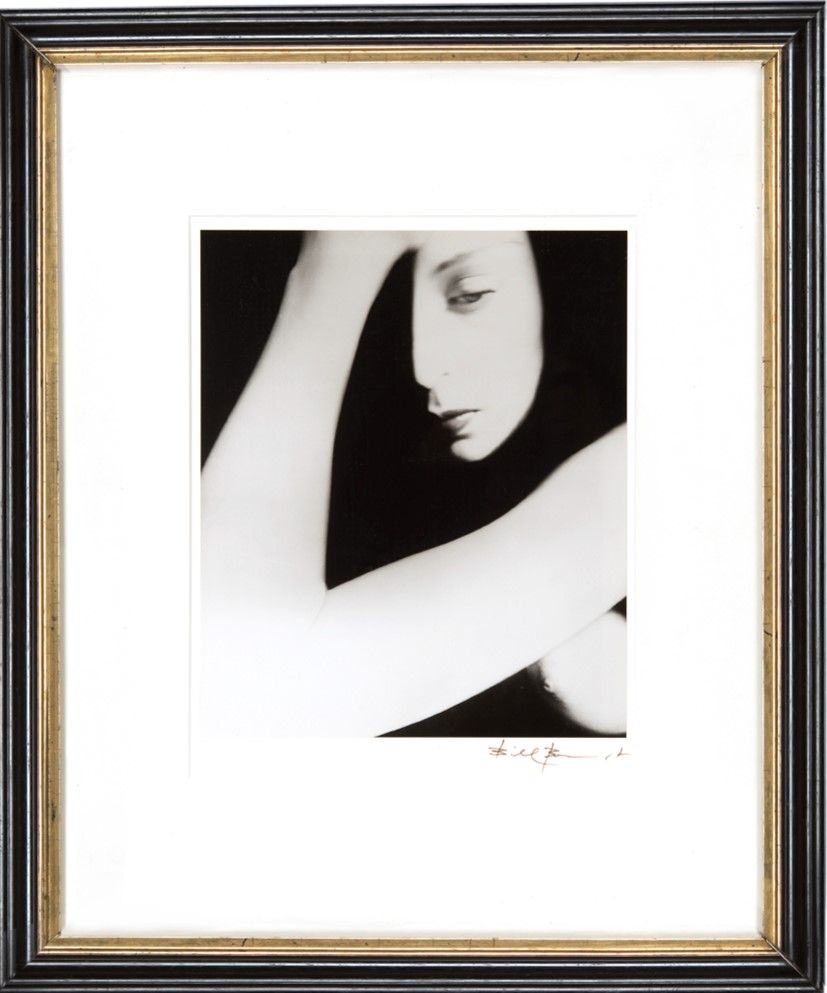 1952 Early gelatin silver print (printed 60’s) mounted on archival cardboard by the artist Cm 34 x 29 Signed on recto of archival board Framed (dark wood and golden frieze + plexi) size cm 69 x 55 x 3 Original provenance: Phillips, New York USA The face is recognisable as that of a woman, although the blackness - it seems too black and too isolating to be mere shadow - pares the face down to key forms. The nipple indicates a breast in the lower right hand corner. The band of white which crosses and recrosses the frame of the photograph, creating new shapes and new angles as it does so, is just recognisable as an arm. Like a draughtsman of consummate skill, Brandt sketches in his subject with a minimum of effort. And yet there are enough mid-tones to indicate the modelling of the breast and of the mouth. Because we are not shown the left hand it is possible not only to imagine the woman resting her head gently against it, but also to imagine the fingers holding a mask in the form of a face. Nor do the possible readings end there. Because the elements of face, breast and arm are only loosely associated against a black background, it is possible to see the face detached and floating free in the void - a rising moon with a face like those in children’s storybooks, gazing dolefully down out of a night sky. This photograph is one of the most compact and yet complex that Brandt has produced, and is extraordinary in that it can carry all these meanings simultaneously. Michael Hiley © 2000 Photology Editions 100 to 2000 the century of Photoart