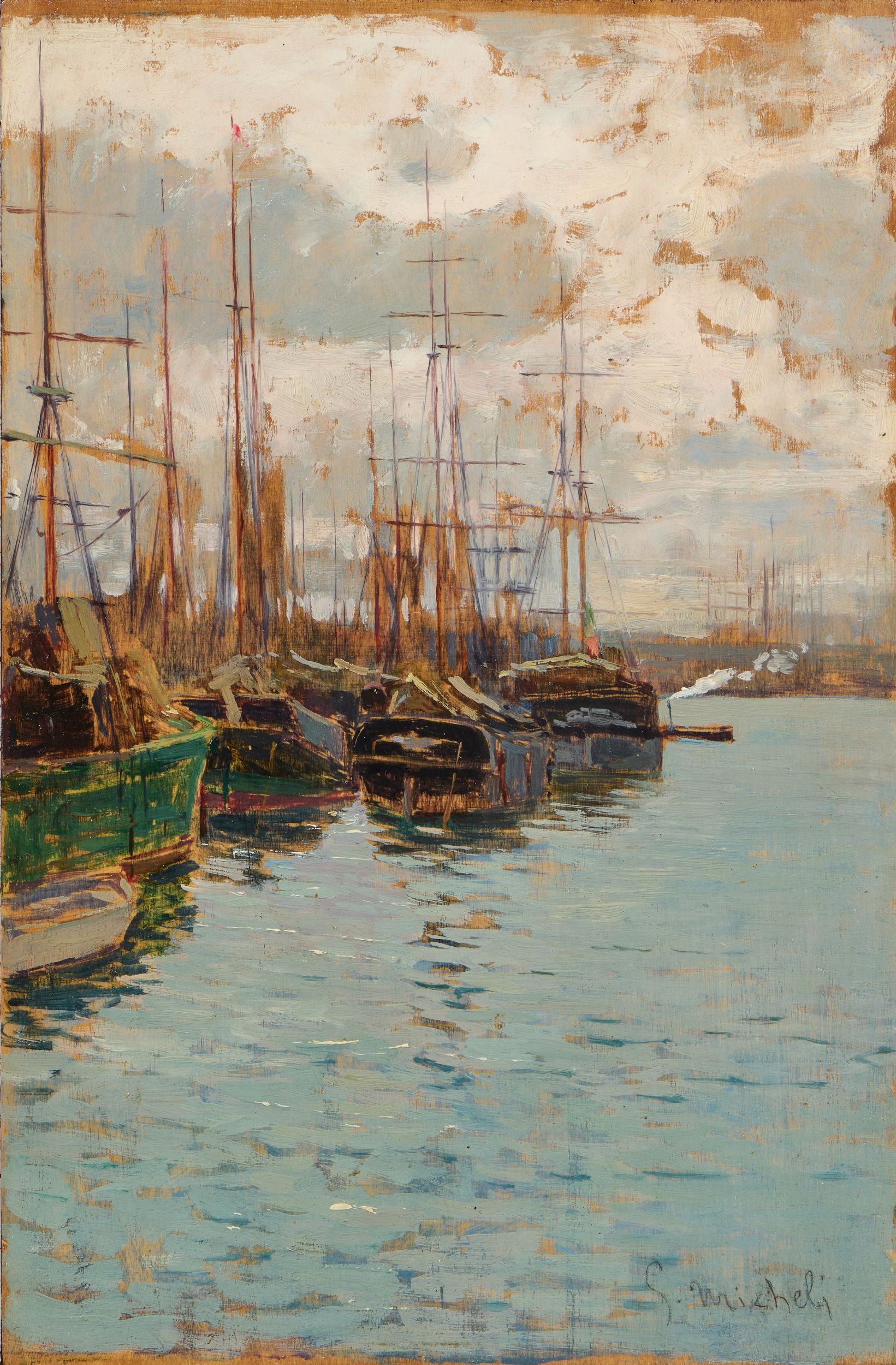Olio su tavoletta, cm 30x19,5 Firma in basso a destra: G. Micheli. Dichiarazione di autenticità al verso: Ritengo questo dipinto / opera originale del pittore livornese / Guglielmo Micheli / Milano, dicembre 1979 / Giampaolo Daddi: timbro Lito Trinca.