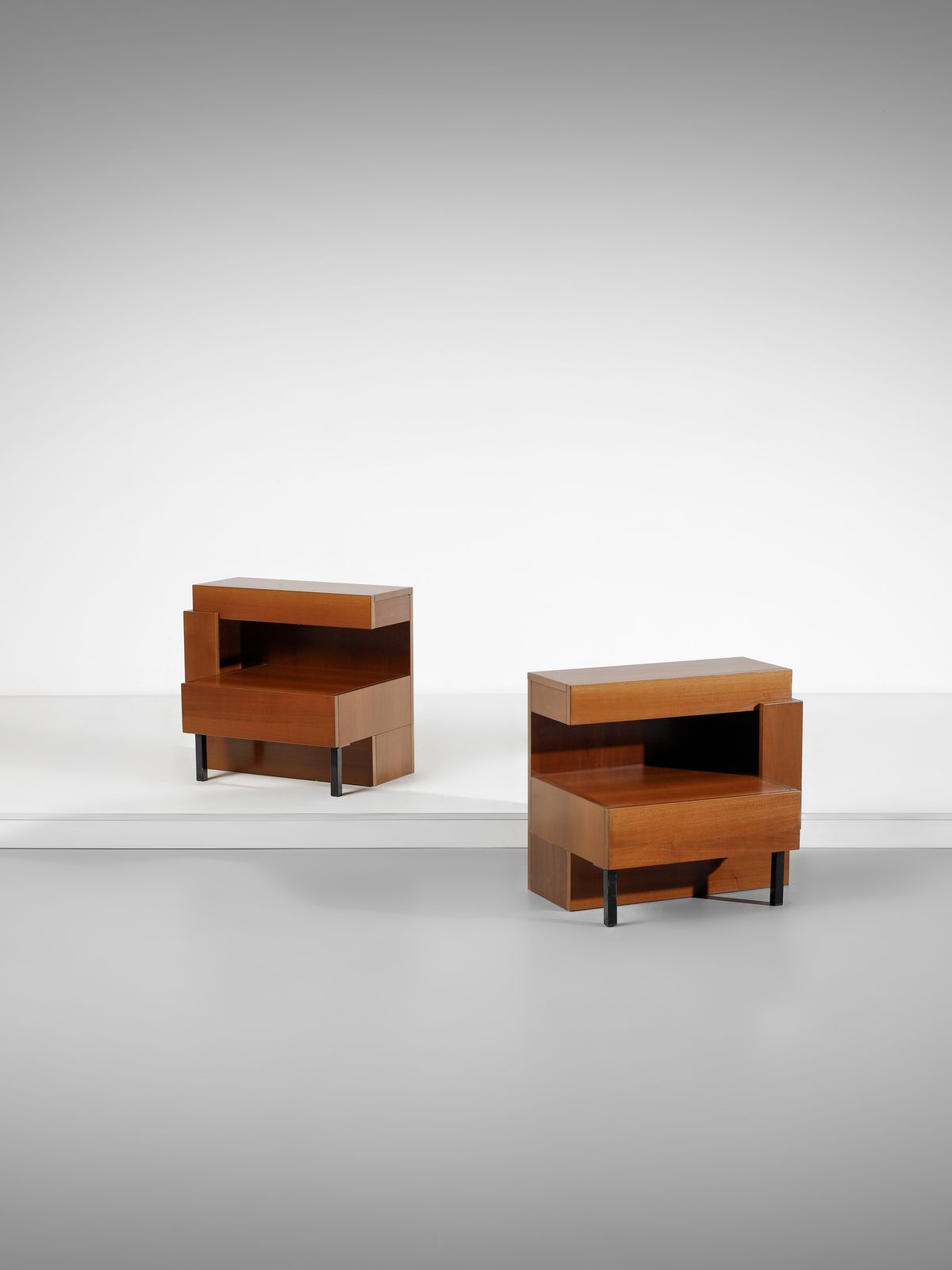 attribuito. Coppia di comodini con vano a giorno e cassetto