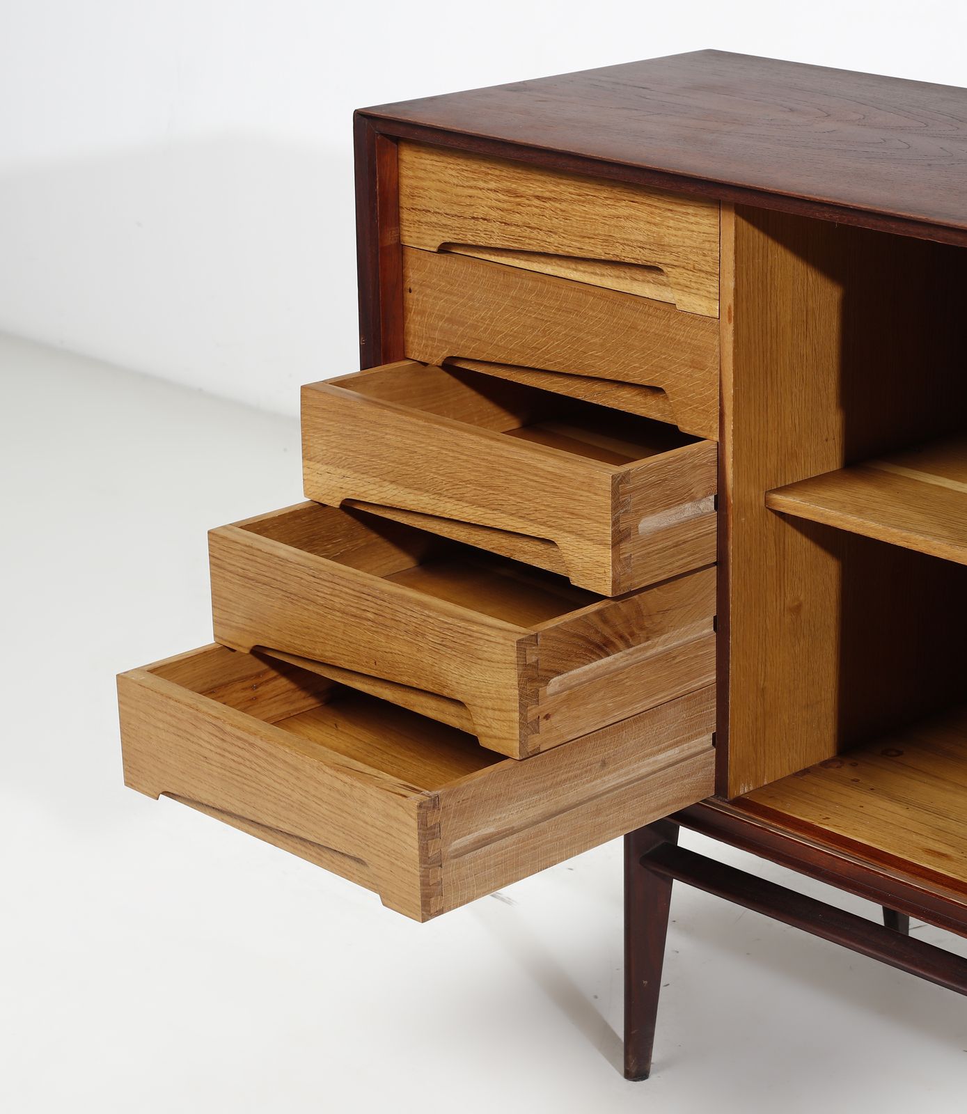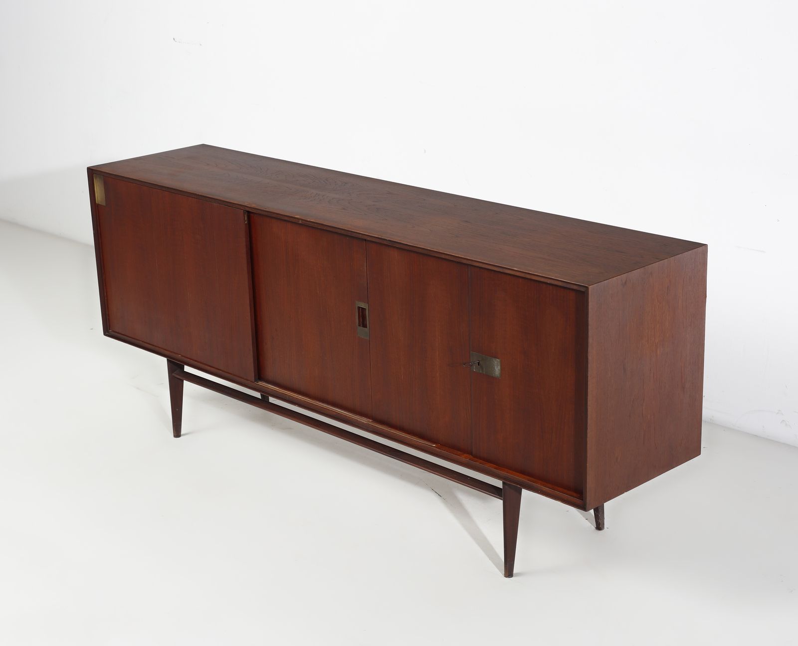 Credenza con stipo ad anta scorrevole celante cassettini e tre ante a cerniera, [..]