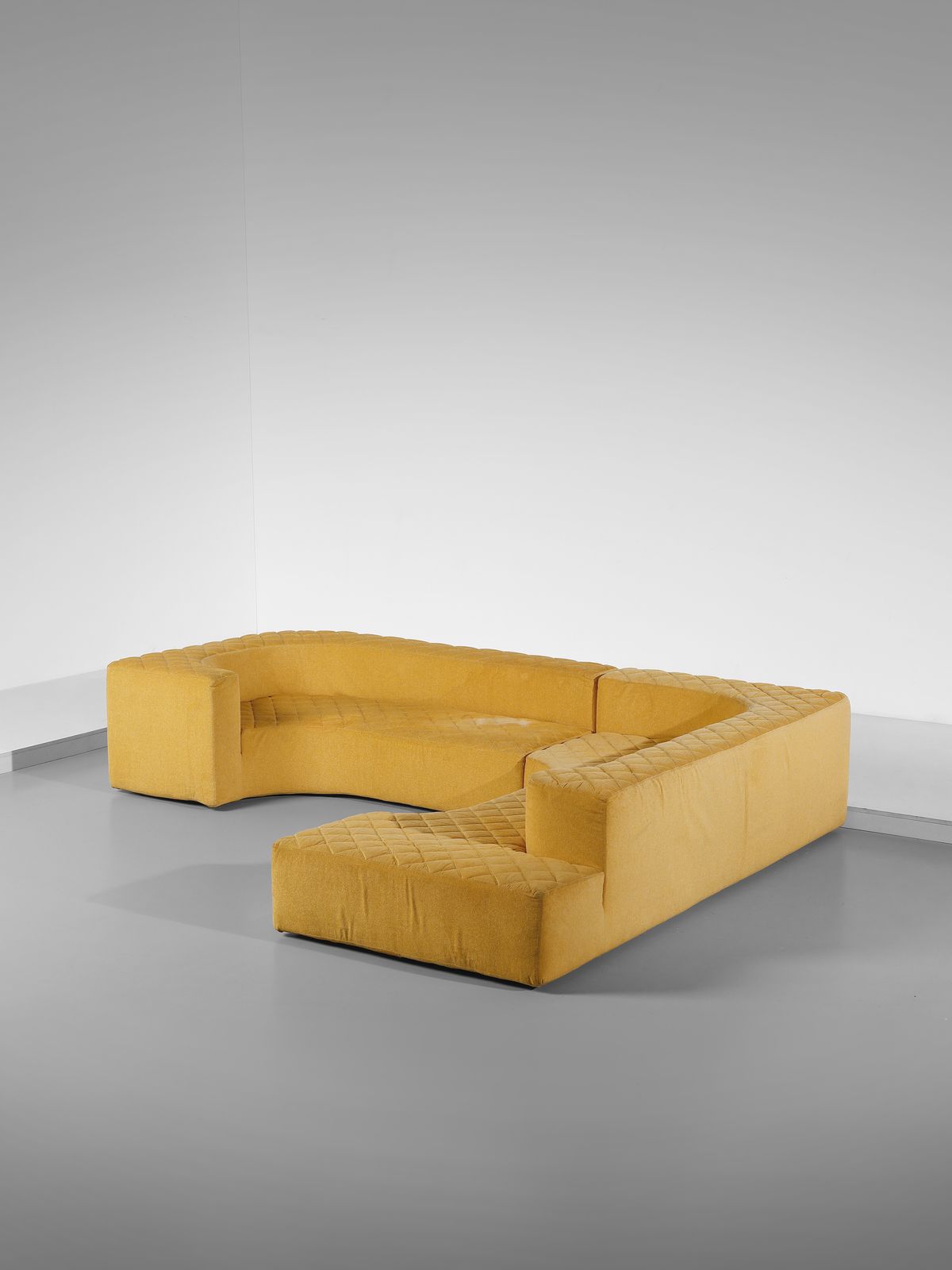 Ultimato negli anni Novanta.Prototipo creato sul modello Lara ed arricchito da un tessuto sfoderabile della Giovannetti collezione.Dimensioni: 62 x 263 x 116 cm. 62 x 197 x 141 cmProvenienza: Collezione Giovannetti, Pistoia.