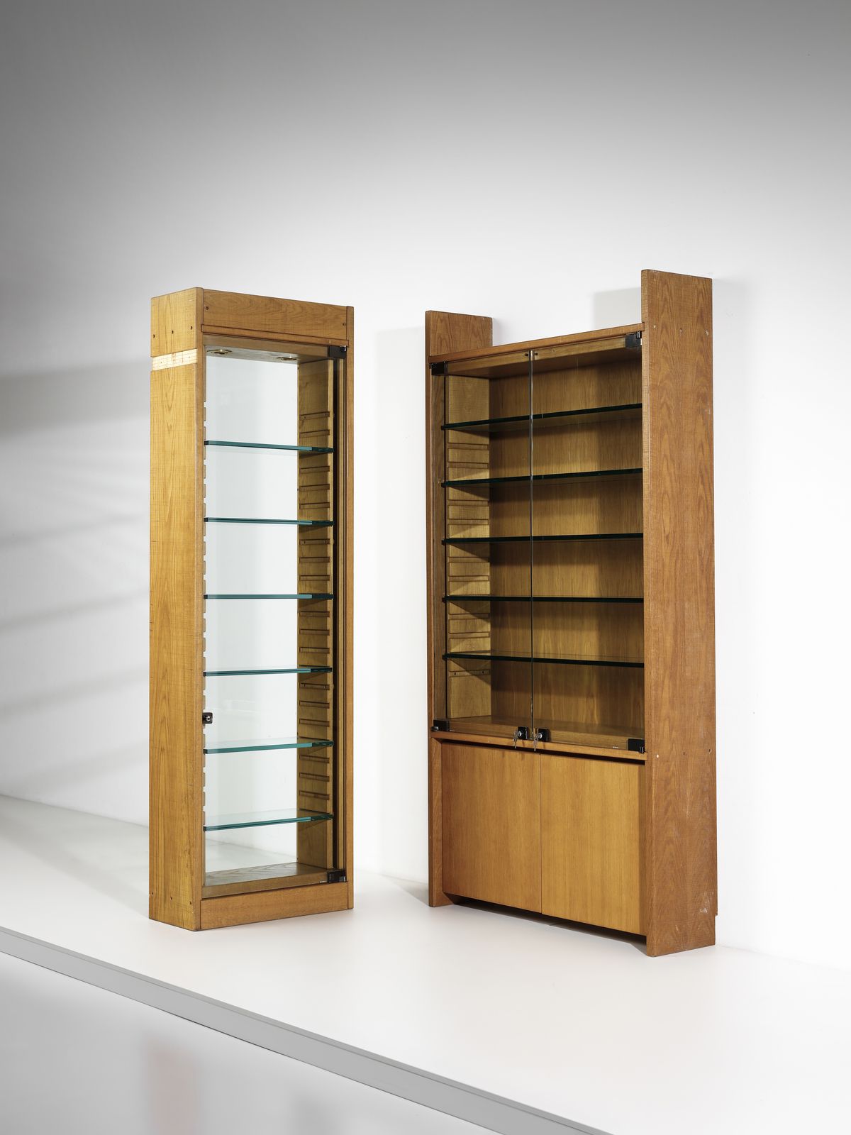 Lotto composto da una libreria a due ante con vetrinetta a cinque ripiani mobili [..]