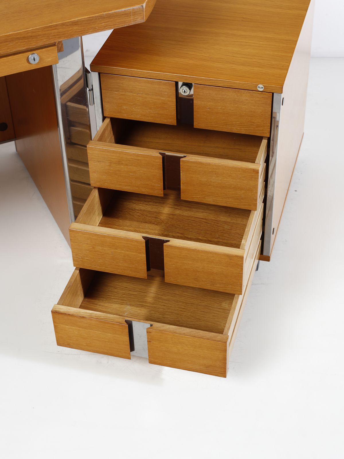Scrivania con piano circolare e cassettiera su ruote a quattro cassetti della serie [..]