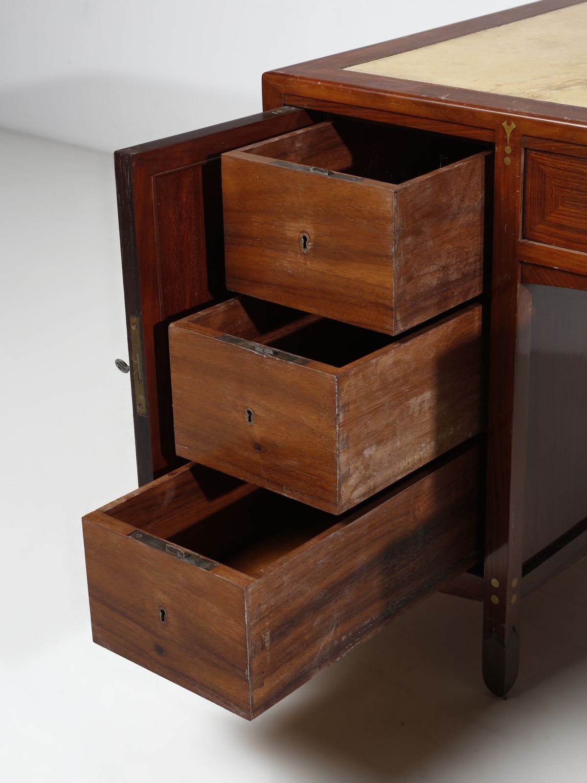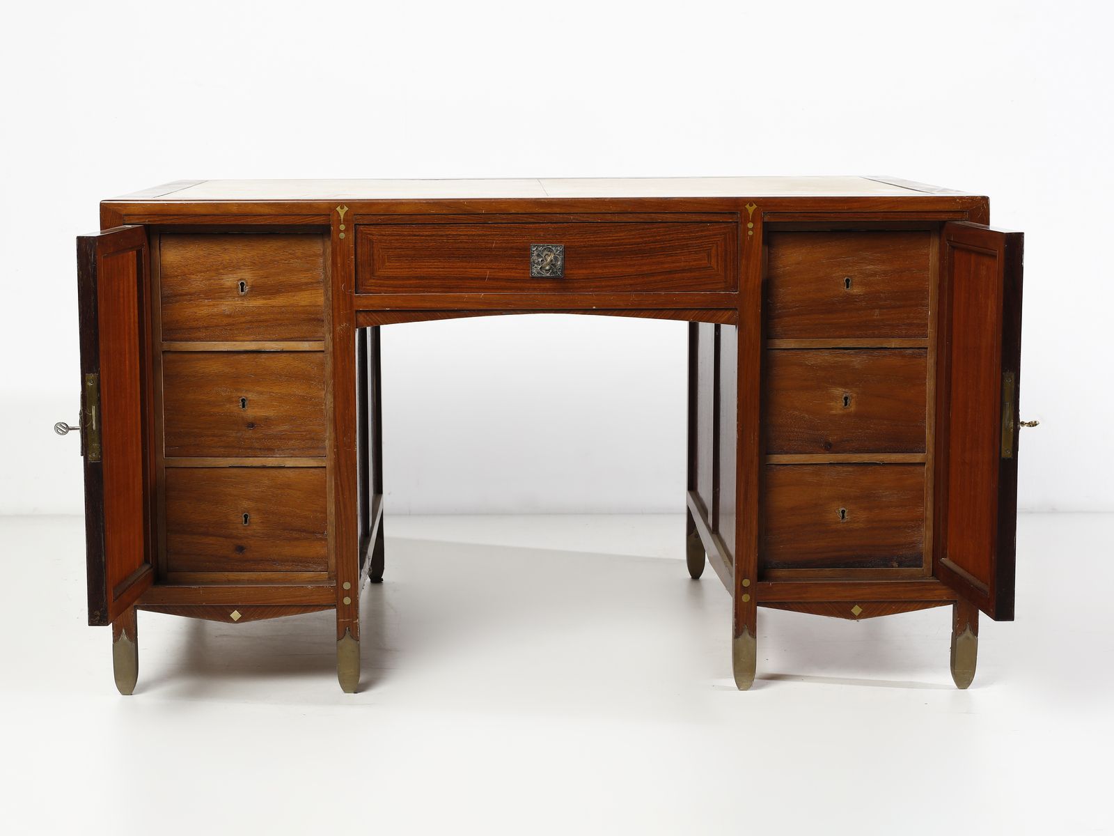 Scrivania Liberty decorata con intarsi a due stipi laterali celanti cassetti e cassetto [..]