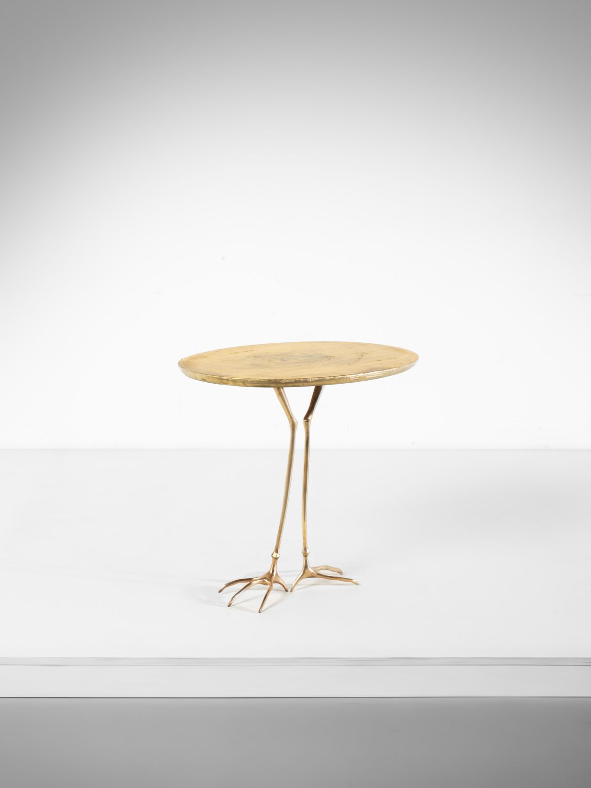 Produzione in serie degli anni Settanta dell'opera surrealista 'Table with bird legs' del 1939 di Méret Oppenheim.