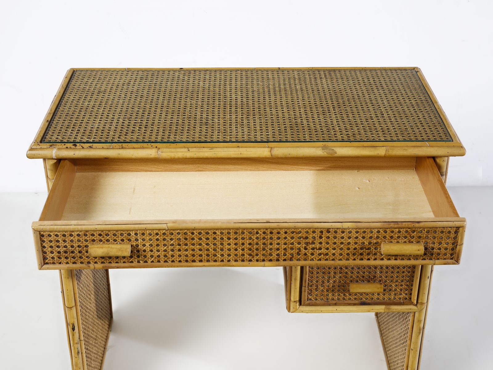 Anni Settanta. Dimensioni: sgabello 50 x 40 x 40 cm. specchio 62 x 86 cm. toeletta 81 x 93 x 46 cm
