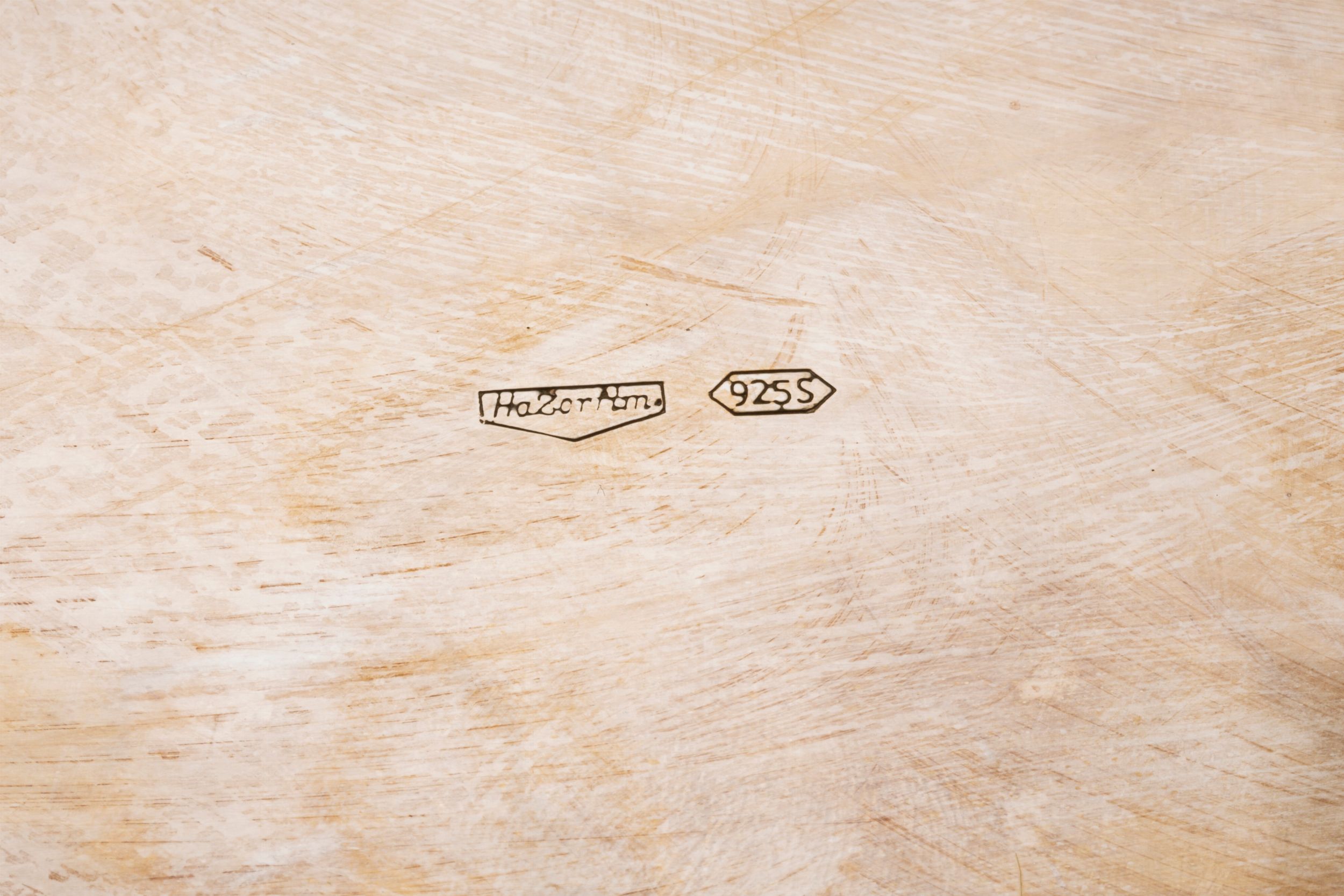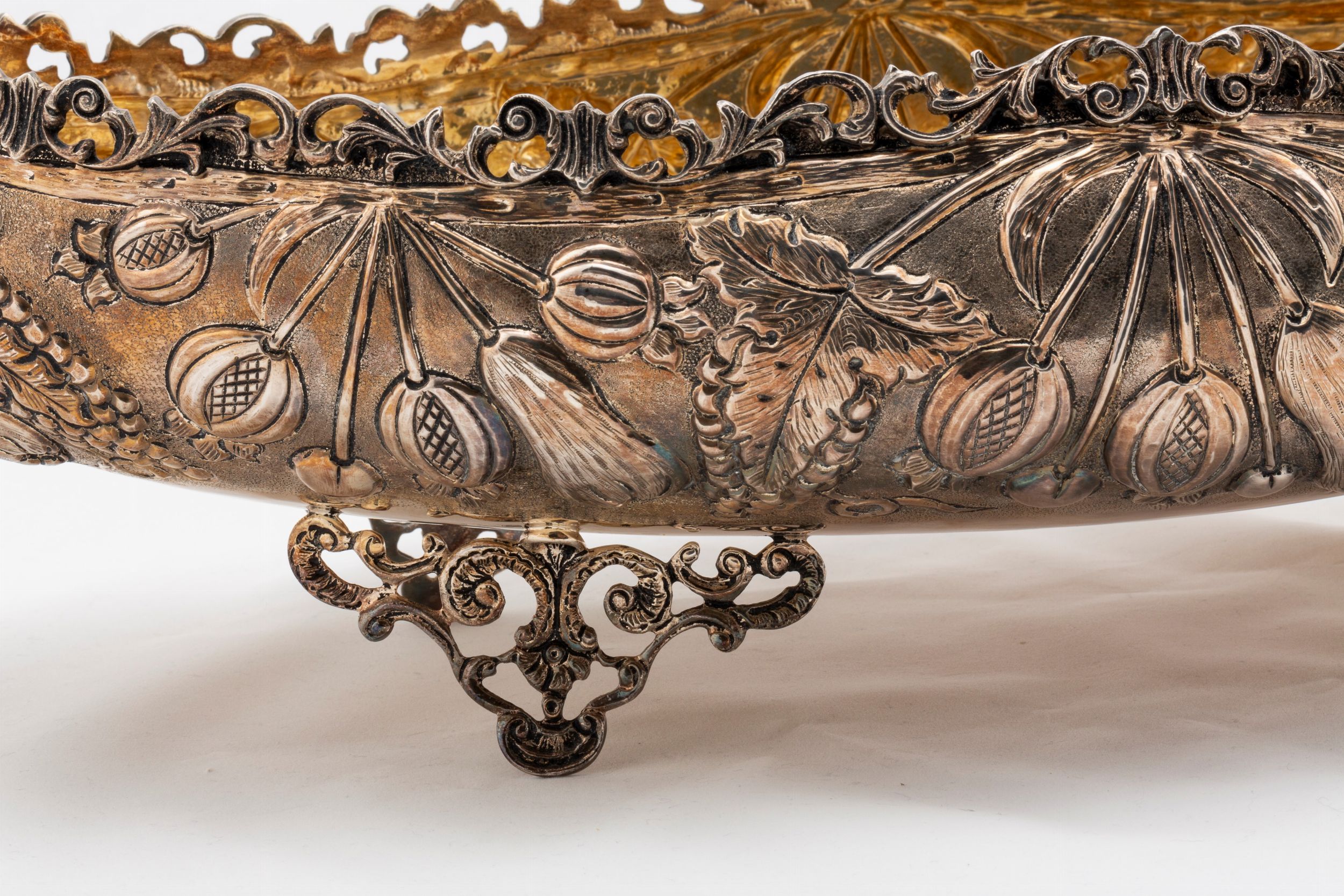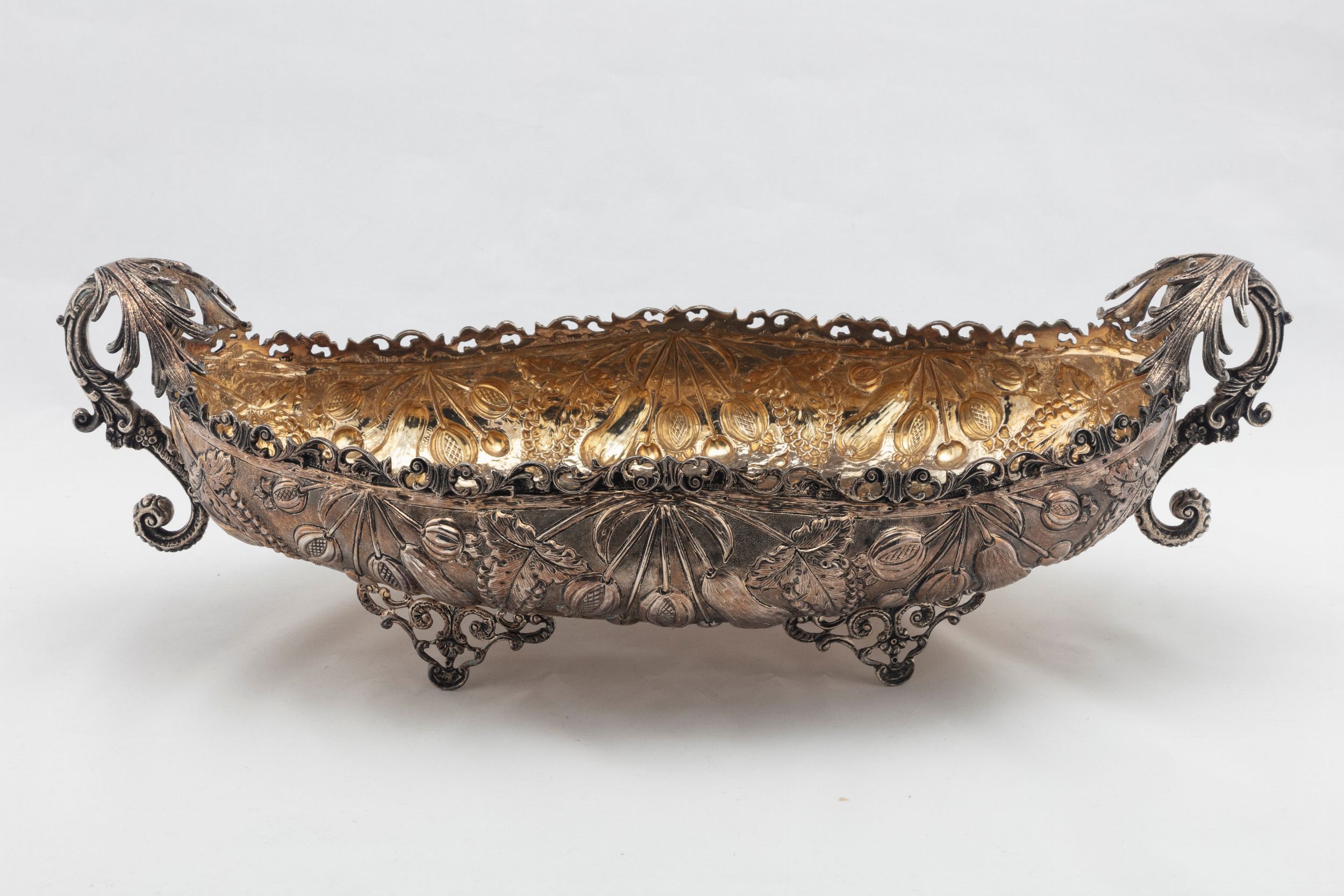 Israele (?), secolo XX Reca punzone 'HazoRam' (non identificato), finemente cesellato e sbalzato a frutta e fiori, piedini floreali, a due anse decorate con foglie di acanto e finale a ricciolo, interno in vermeil.