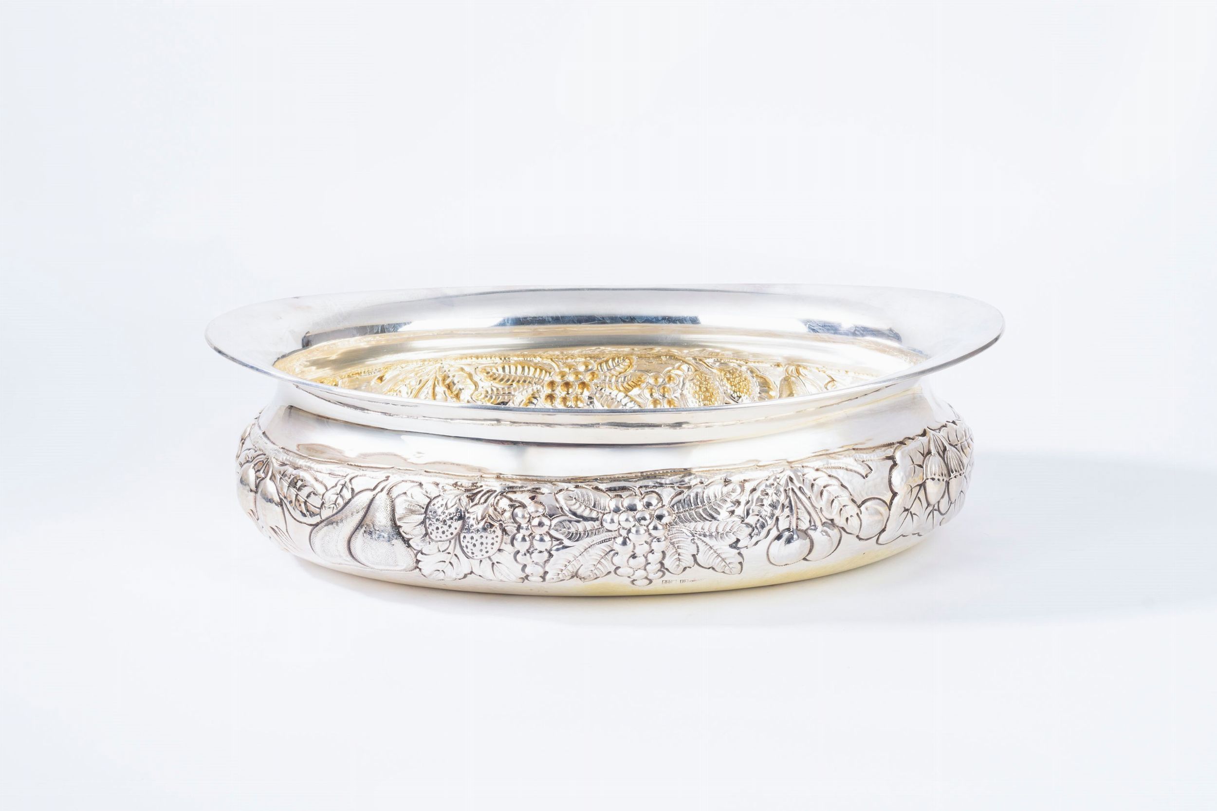 Italia, secolo XX fuso e sbalzato, decorato con motivi vegetali e frutta, interno in vermeil.